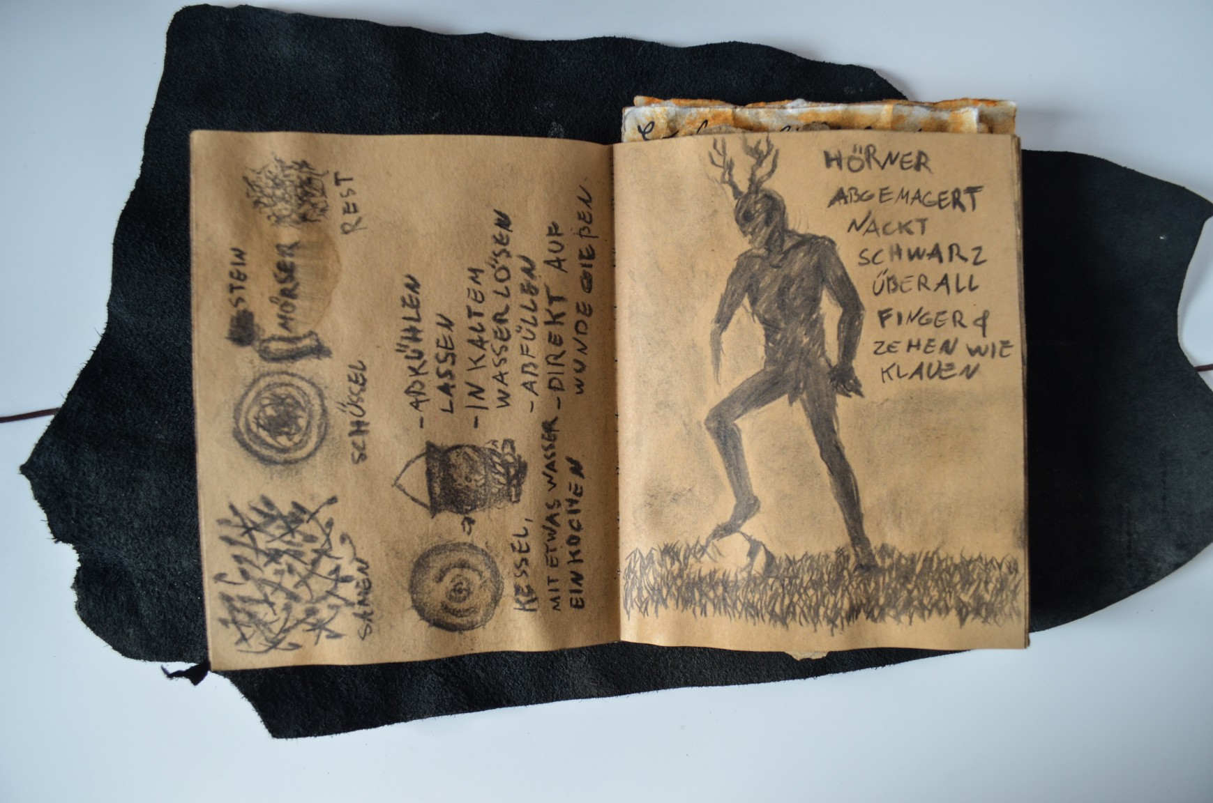 Bor doesn´t only use the sketchbook to draw with charcoal but also to take notes about plants that have healing properties, how to process them or which plants are poisonous.