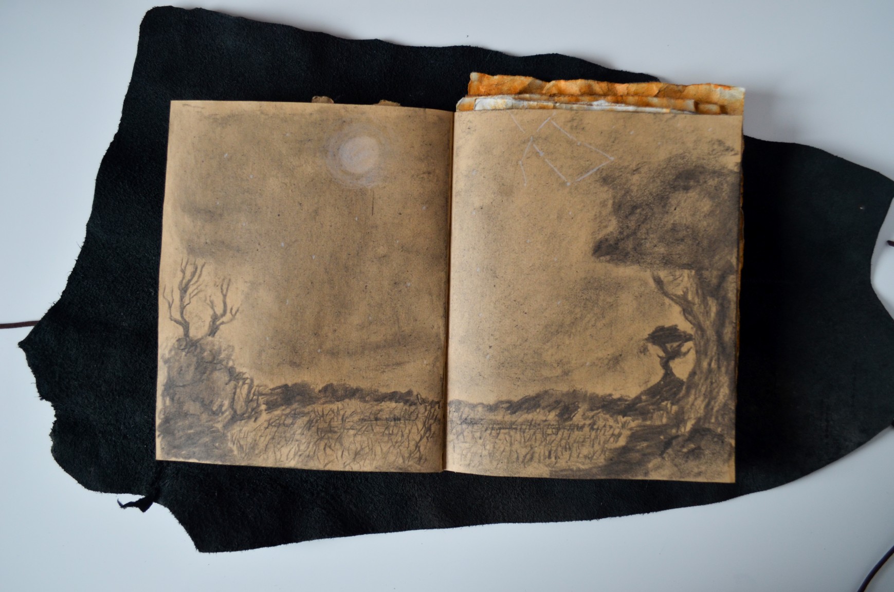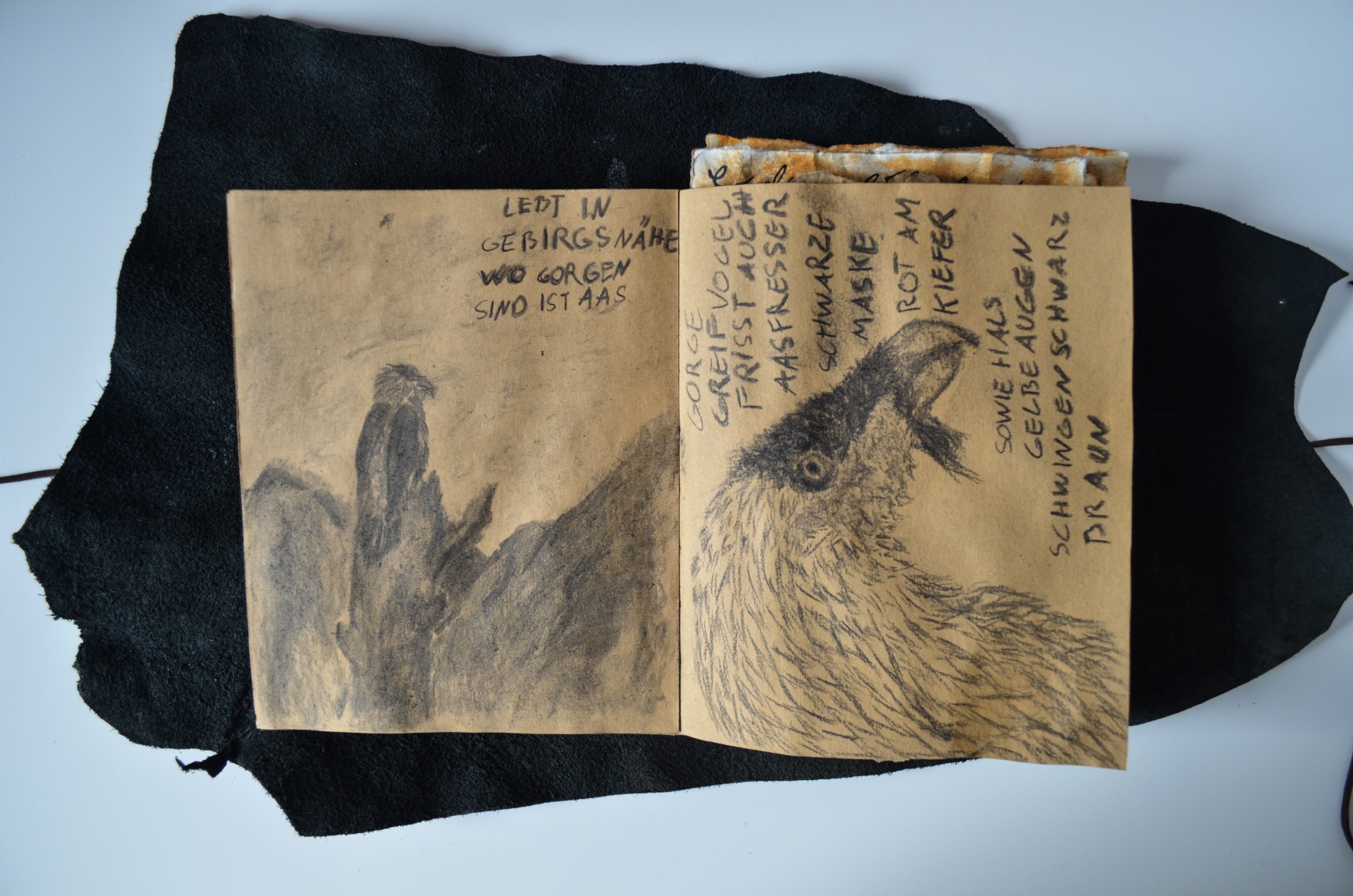Written in the author´s mother tongue, German, Schattenklage is a medieval fantasy and its setting has informed the rough-looking final outcomes such as a sketchbook which is made by one of the protagonists, Bor.