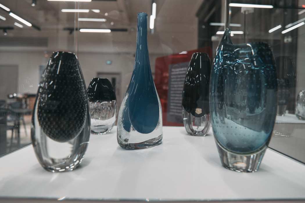 At Åfors, Gordon Adsetts found the perfect environment to nurture his work. Established in 1876, the company had a reputation for its cut and moulded glass – but by the 1950s the company’s sales of its main output were dwindling and Gordon Adsetts was appointed as part of a bid to modernise the product range and develop a line of luxury art glass. This was a critical moment for Swedish glass production – part of a conscious effort to promote ‘Scandinavian Design’ through international exhibitions in the 1950s, promoting the ‘Scandinavian way of living’, characterised by the use of natural materials like wood and stone, and virtuosity in glass, ceramics and textiles. Designer craftspeople were embedded in the industry, encouraged to produce individual pieces whilst also designing for batch or mass production of functional and beautiful artefacts that were available to all – what Katherine Nelson and Raul Cabra have characterised as ‘functionality, modesty, equality, beauty’. The Åfors works themselves, set in deep in the forests of Småland (originally offering an unlimited fuel supply for the works) with attached village, community hall and community of highly skilled craftspeople seem almost to offer a physical embodiment this philosophy.