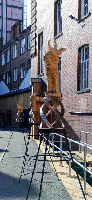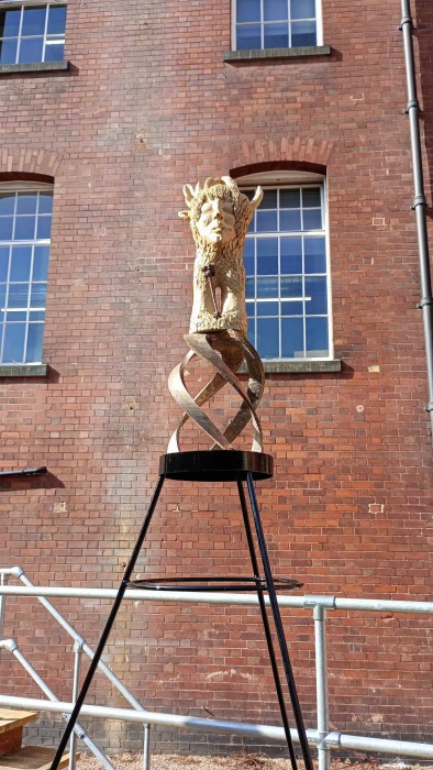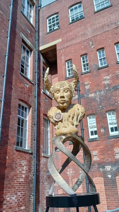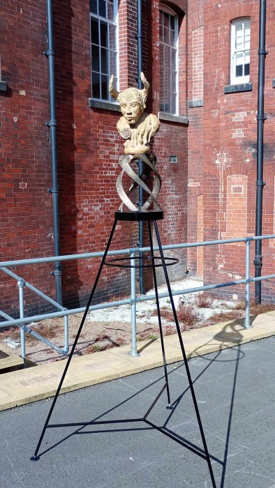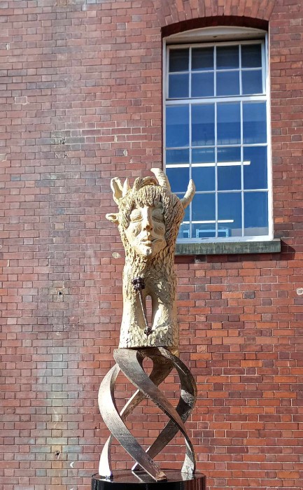 Steven Wood’s sculptures, Guardians of Creativity stand guard in the Old Head Post Office courtyard. These symbolic gargoyles are seated on steel stands which echo the metalwork of the courtyard gates, mythical beasts guarding the gates of fantasy and imagination. They serve to remind us that everyone, regardless of their backgrounds, are welcomed and encouraged to explore their creative potential without fear or judgement.