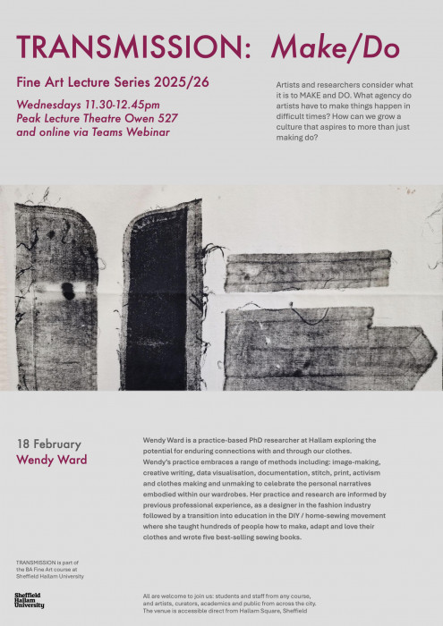 Wendy Ward is a practice-based PhD researcher at Hallam exploring the potential for enduring connections with and through our clothes. Ward’s practice embraces a range of methods including: image-making, creative writing, data visualisation, documentation, stitch, print, activism and clothes making and unmaking to celebrate the personal narratives embodied within our wardrobes. Her practice and research are informed by previous professional experience, as a designer in the fashion industry followed by a transition into education in the DIY /home-sewing movement where she taught hundreds of people how to make, adapt and love their clothes and wrote five best-selling sewing books.