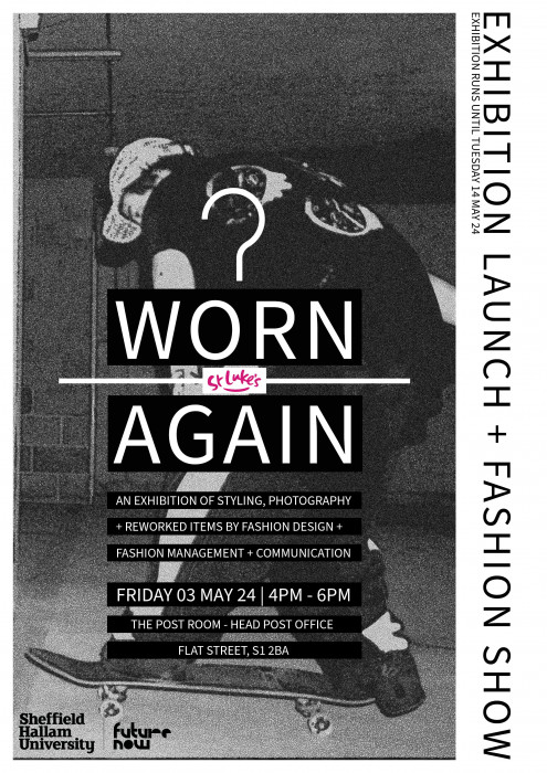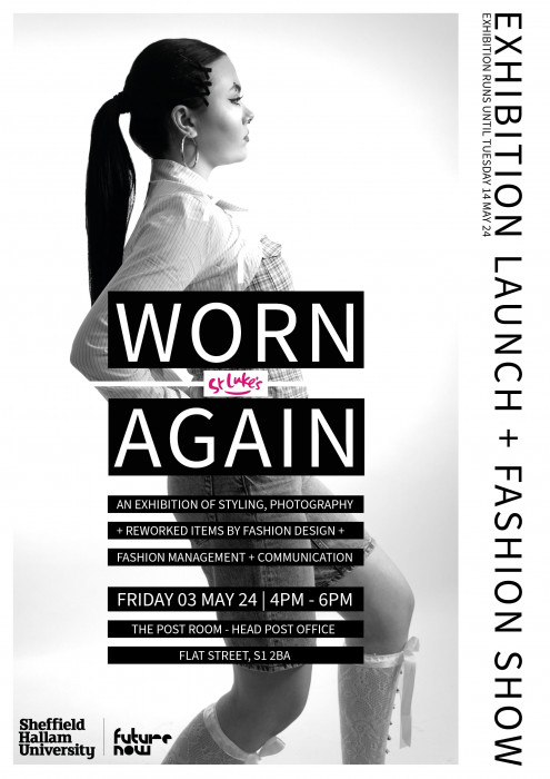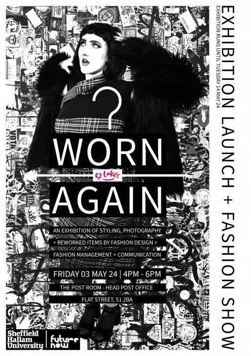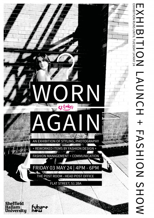 FMC Students were set a brief to encourage the donation and use of pre-loved clothing and to promote the work of Sheffield’s St Luke’s Hospice through the creation of an editorial publication. Each student has developed an individual concept which either; encourages more men to donate; inspires the long-term use of items; or promotes adaptability and experimentation with garment sizes. Students have art directed, styled and photographed models wearing items available in St Luke’s for a series of images to include in their publication. Each student has chosen one image to show in the exhibition.