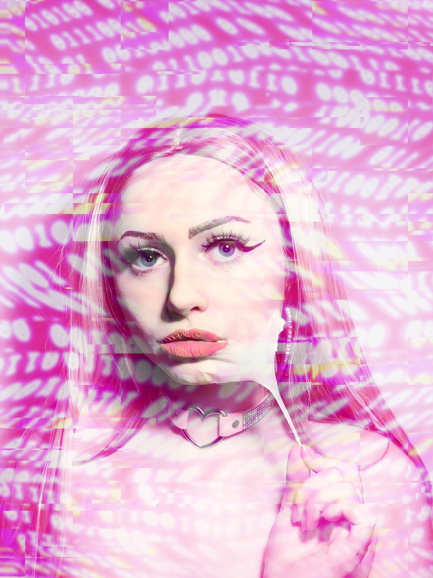 Chloe White is a queer artist, born in Manchester. She uses the methods of digital art, performance, and installation, utilising her skills of photography, make-up artistry, choreography, and video editing, to produce her pieces. Her practice explores the future of automation and sex work, and provides commentary on feminism and ultra-femininity. White has brought these themes to life through digital edits and live performance, with her characterisation of ‘BIMBOTICA’, performing at multiple events, including a queer cabaret. In her past works, White has used digital art to analyse queer history and the evolution of queer spaces in an ever-expanding digital world.