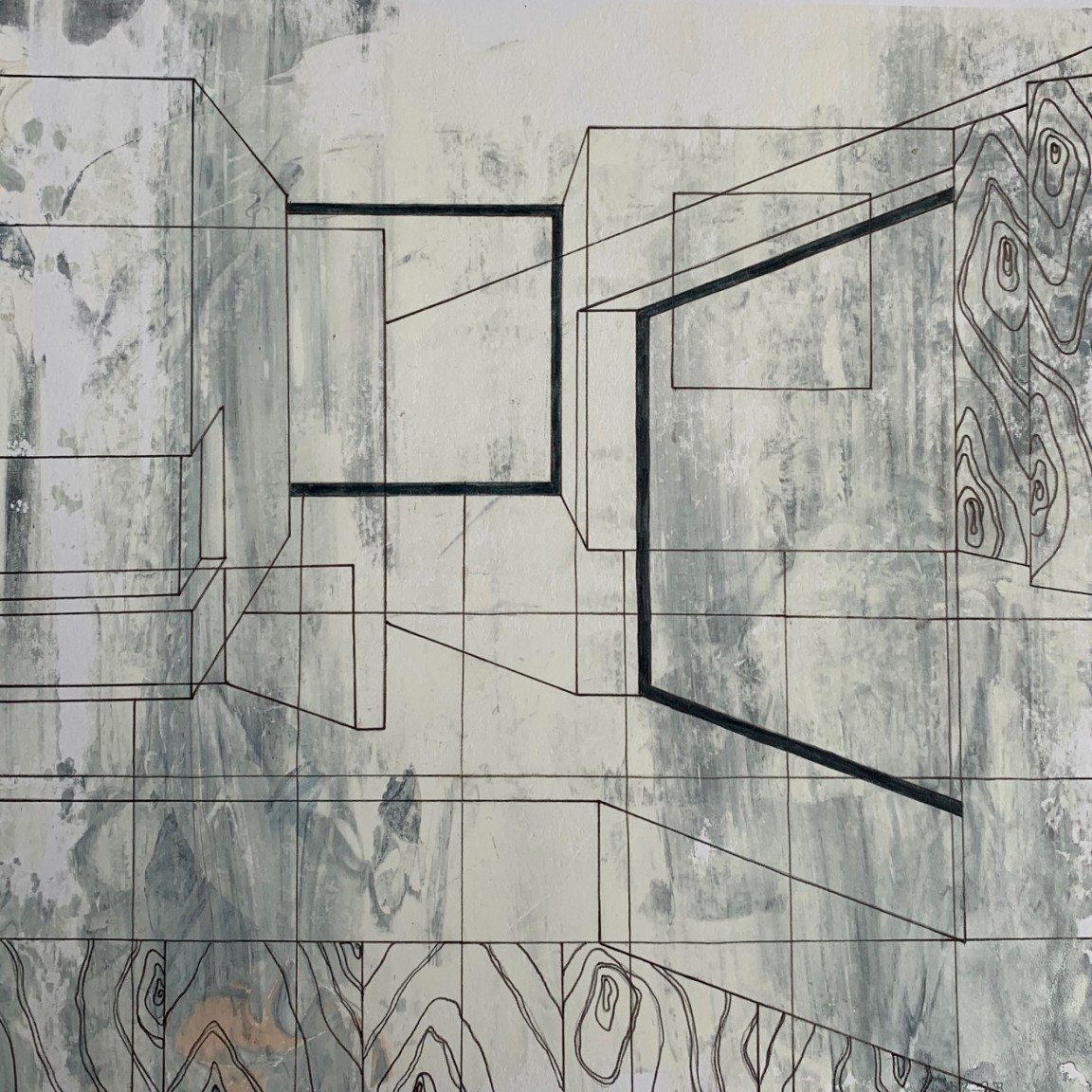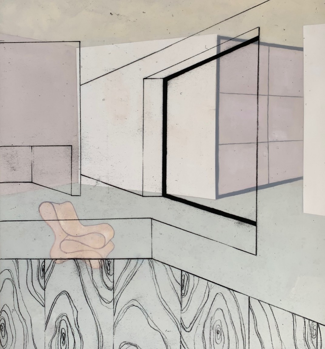 Etheridge’s practice explores space in relation to contemporary art and design methodologies, with the contextual understanding that certain physical design qualities of a space can trigger different psychological responses within the occupant or viewer. She has developed a distinctive and personal value of space within her practice where certain processes, such as layering and the use of line to refine an interior down to its most fundamental physical qualities, introduce a sense of empty space into which the viewer can project their own feelings of atmosphere.