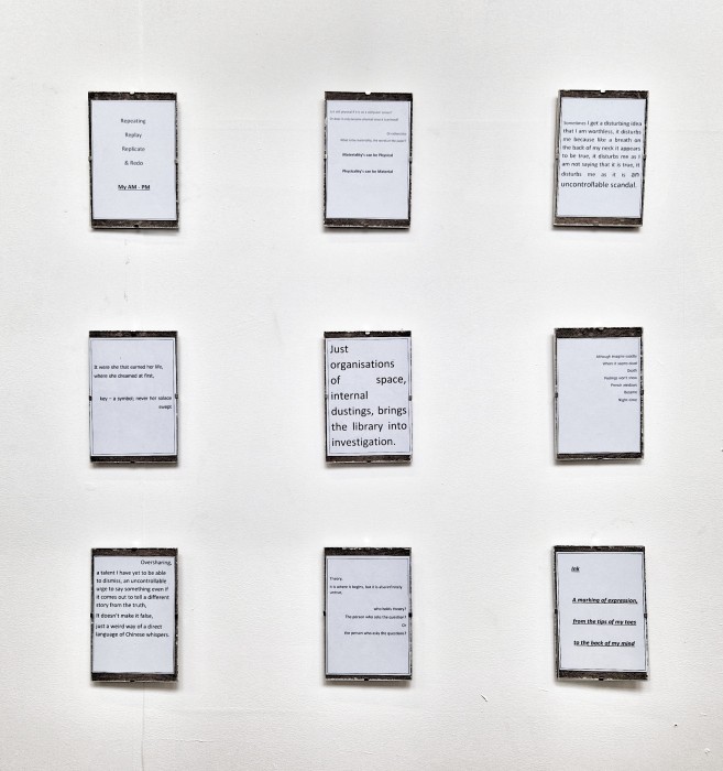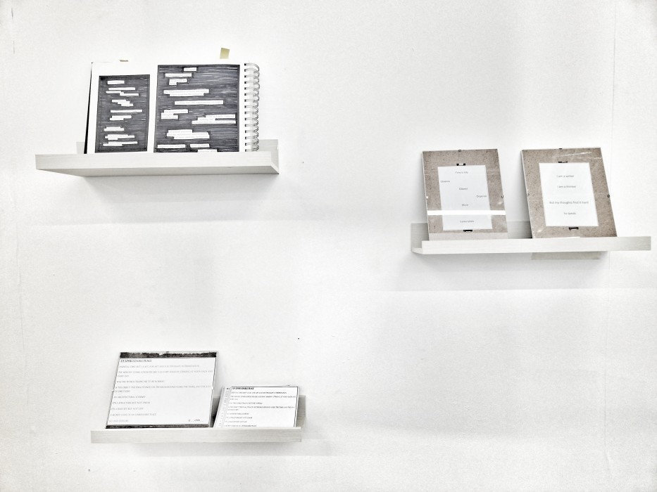 The words need space, a wall, the floor, the negative space in-between. But Chelsea Marie doesn’t wish to shout. Large scale and yet not over whelming. The words matter but the implication also matters. Whether frames or a door: she will confirm how she wishes to explore.