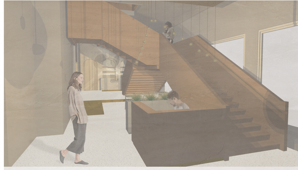 Wonder around the space whilst taking a journey through the history of the Amber, and educate yourself about North Gold whilst getting closer to cultural importance, these are the aspects Gintare Rapoport considered within the cultural exchange project to create a visual learning experience. Proposed stairs with Amber rails are the focal point that takes people through the Amber experience with the aim to answer the main questions. Where the Amber comes from? What does it look like? Where Amber can be found? Answering these questions in a visual and literal manner allows people to get closer to the real-world experience.