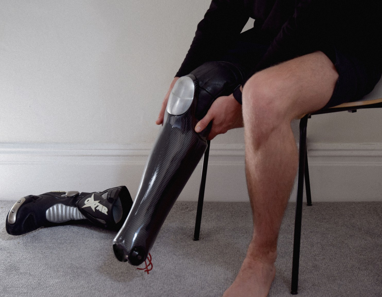 Jay Dennis has developed a speculative prosthetic for a future where the body is a consumer item which can be upgraded. This transhuman product is designed for motorcycling enthusiasts looking to push for increased performance, safety, and comfort. With a focus on high performance materials and manufacture the prosthesis provides the user with ultimate protection (at RRP + the loss of a limb). At a fraction of the weight of a human leg, users no longer need to worry about lower extremity injuries. Instead thanks to a carbon fibre socket and an in-built titanium knee pad the user can walk away from accidents with nothing but a scratch.