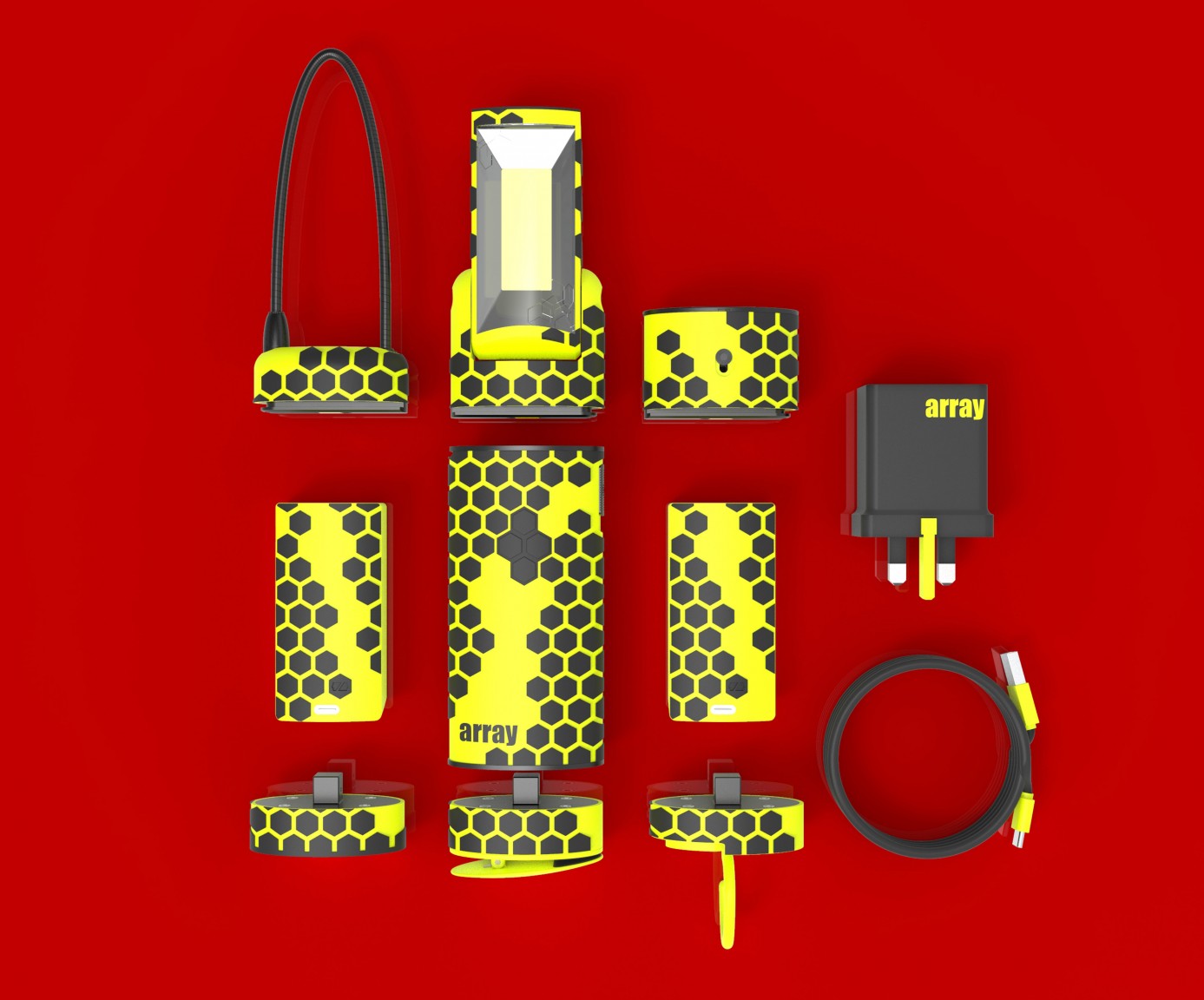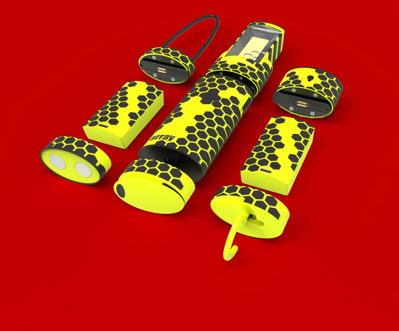 Array is a modular lighting system aimed at amateur mechanics to improve safety and workflow, designed by Scott Padgett.