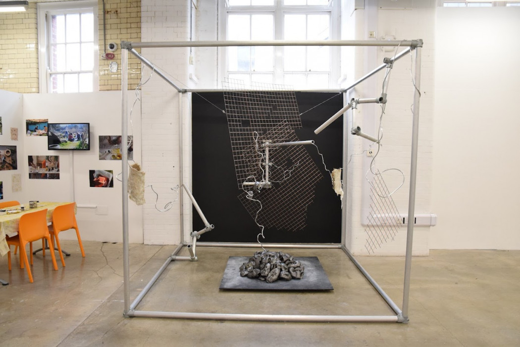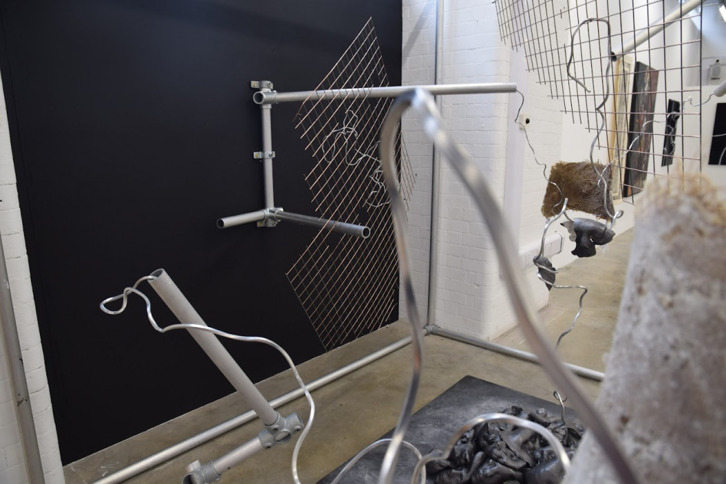Prendergast had a unique curatorial approach: she did not arrive at the gallery with a vision, instead she invested 50 hours into tactile play, 3D sketching and intense creative thought. This honours her neurodiverse methodology to realise her degree show piece. Her curation was integral to the concept of A Simple Task. The action of her building up a tenuous scaffold externalises the notion of her as a neurodiverse woman trying to stay afloat in a patriarchal, neurotypical society. It is a performance piece in itself.