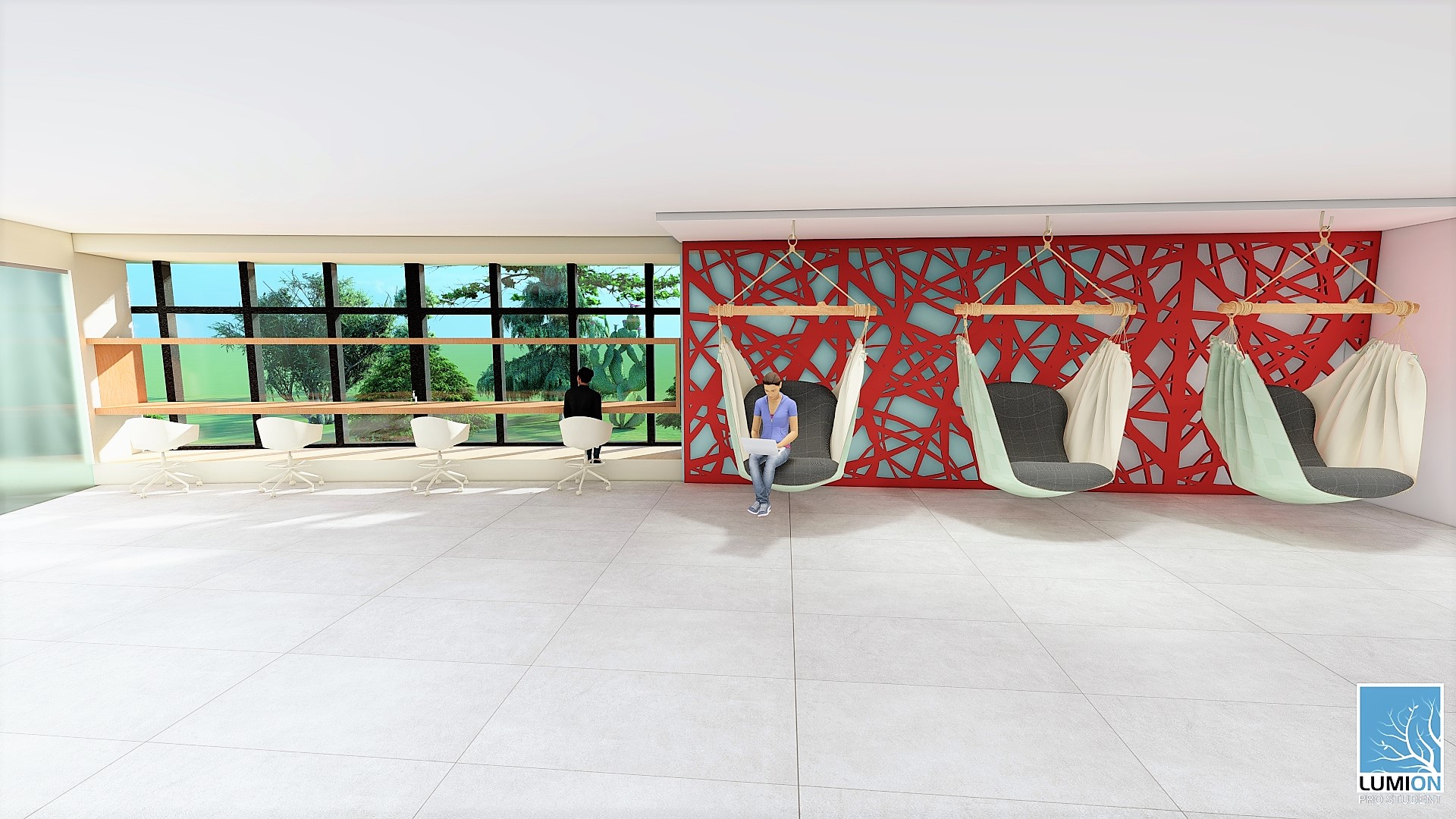 Shanmathi Subramaniam has responded to the challenges of office working in a post Covid-19 world with a biophilic collaborative workspace. Modelled on an existing space in Kozhikode, India and informed by her own research, the Biophilic Office Design contains a rich range of work spaces aiming to facilitate new ways of post-pandemic safe working.