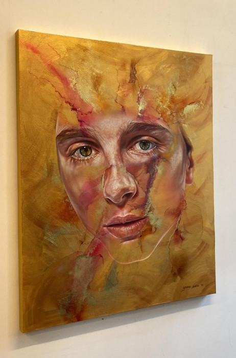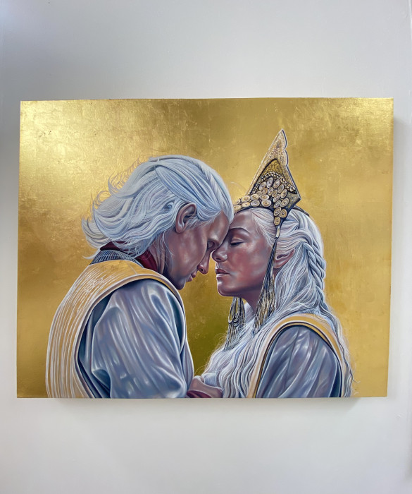 Capturing stills from film with the use of oil paint, a twenty four carat gold leaf, acrylic and alcohol inks.