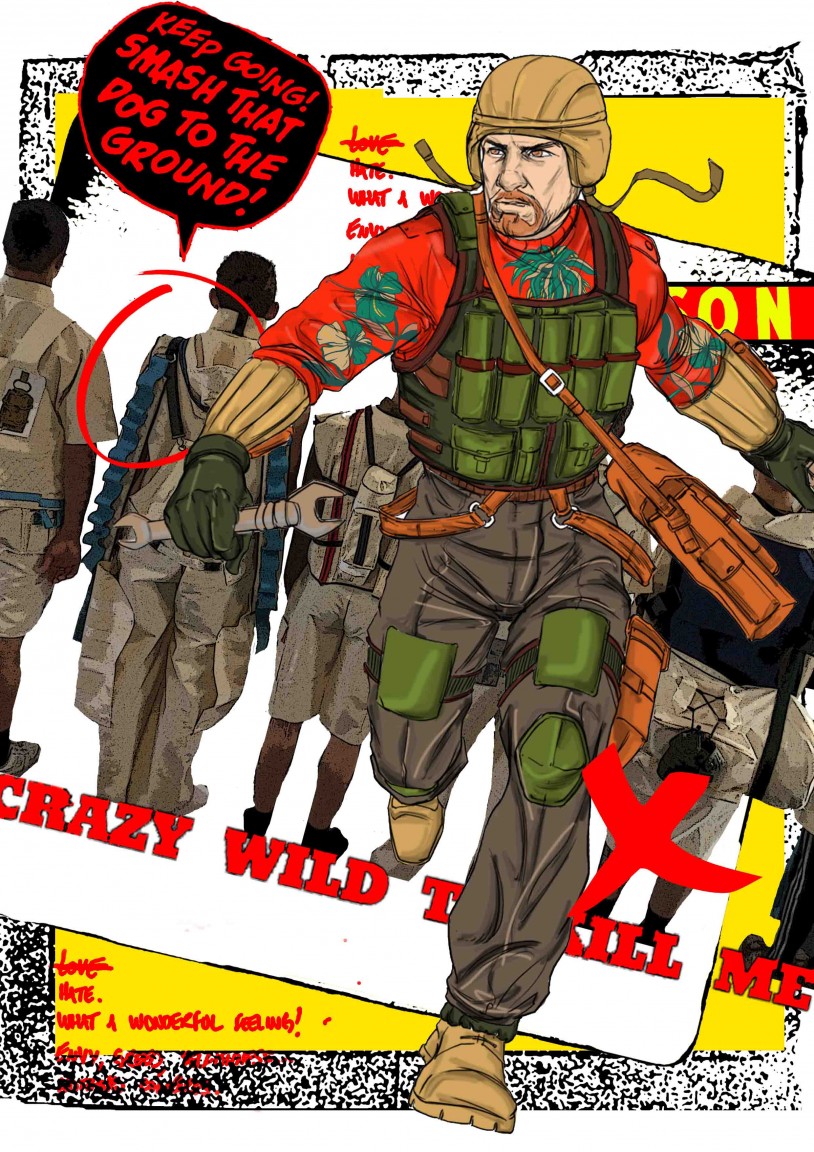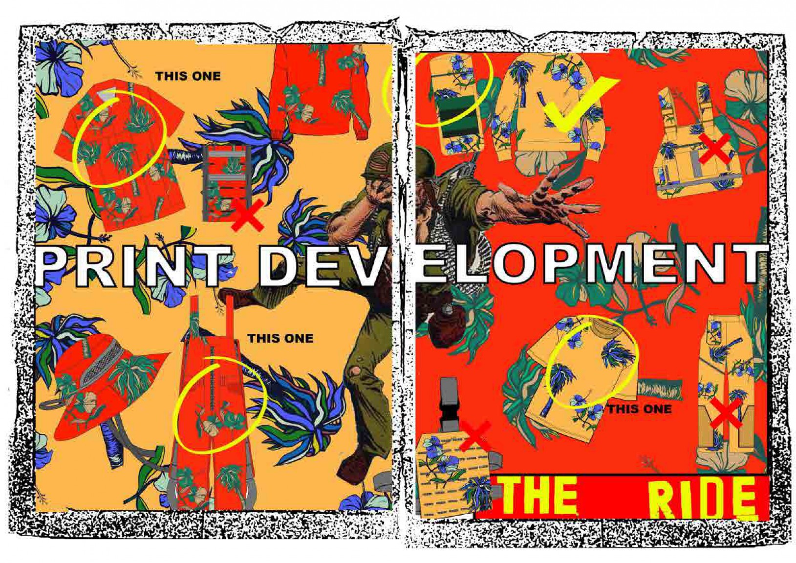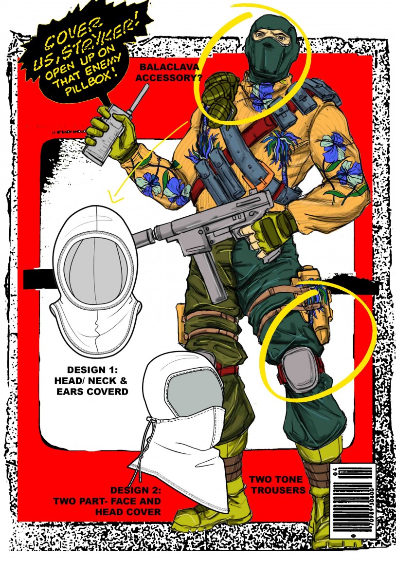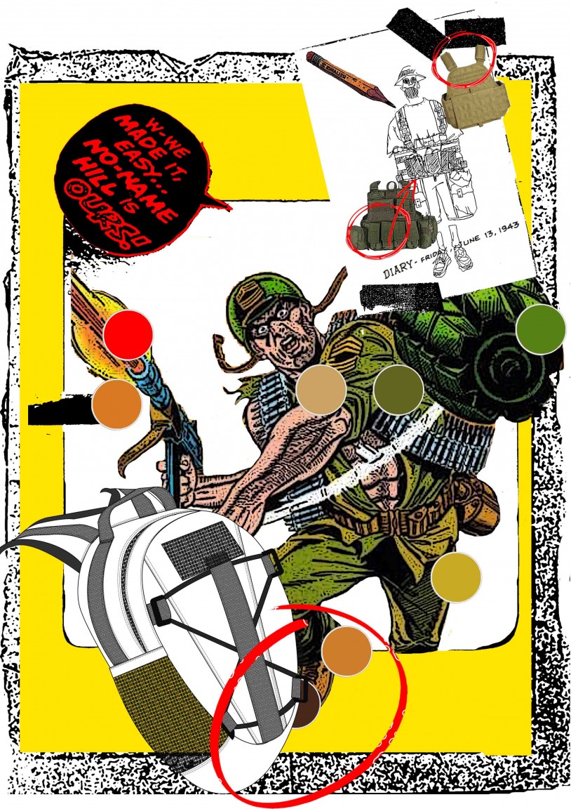 Jessica Anderson’s graduate collection gives military clothing a crazy twist. MOLLE pouches, hydration packs, utility bags and utilitarian detailing are subjected to a blast of colour and print from the mind of Hunter S Thompson. Anderson’s interest comic book art is a clear influence as is her reflection on the brands Carhartt and Stone Island, but the collection is very much her own