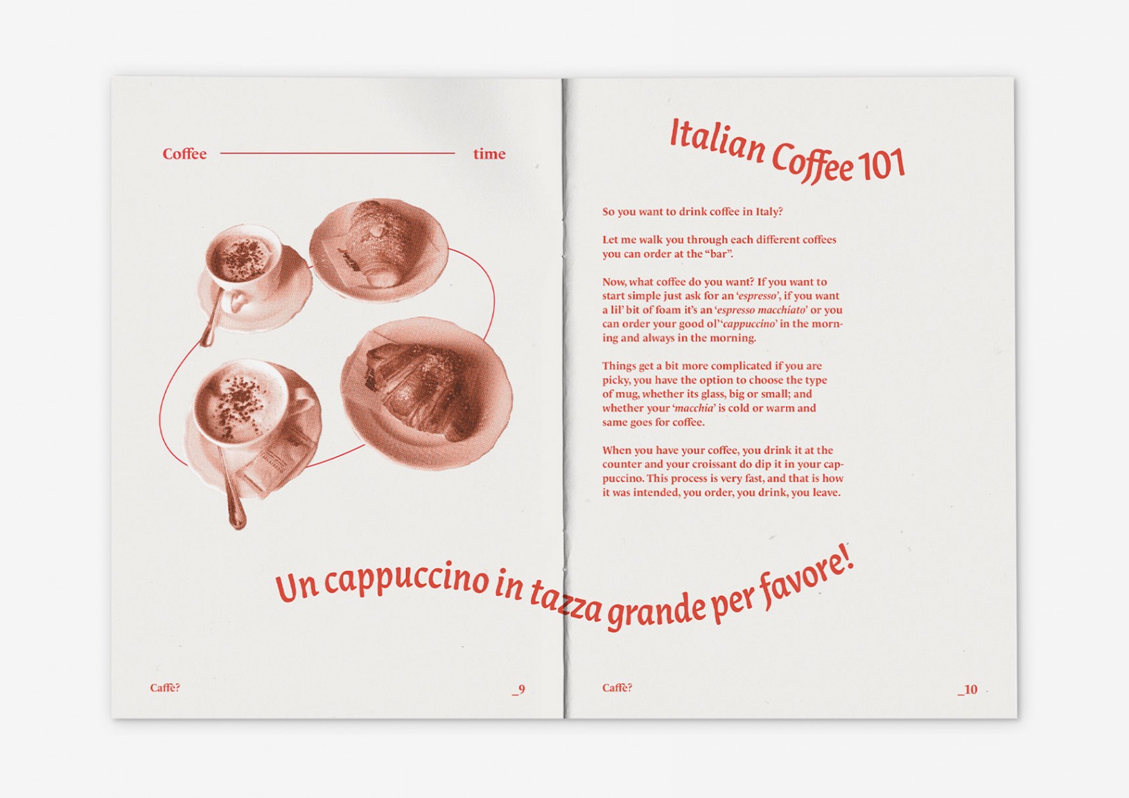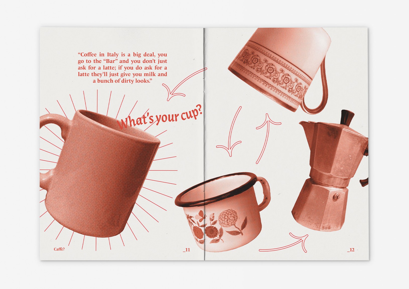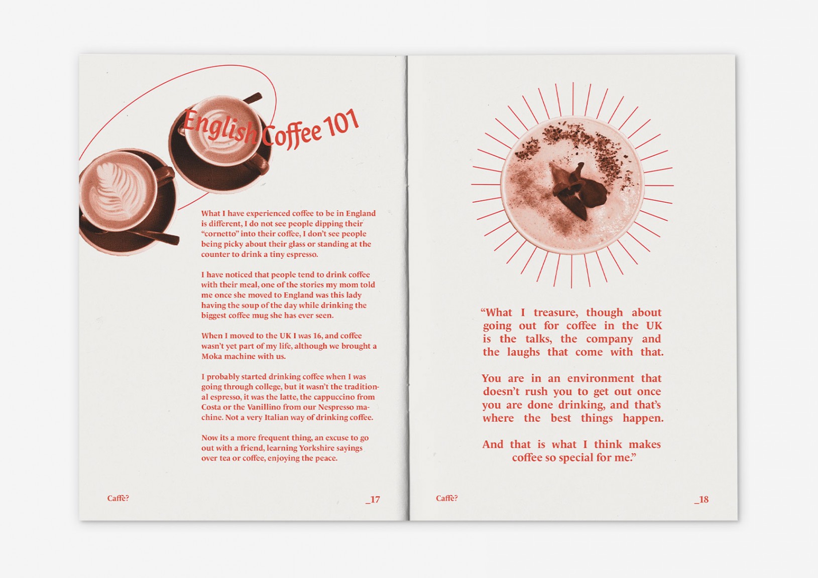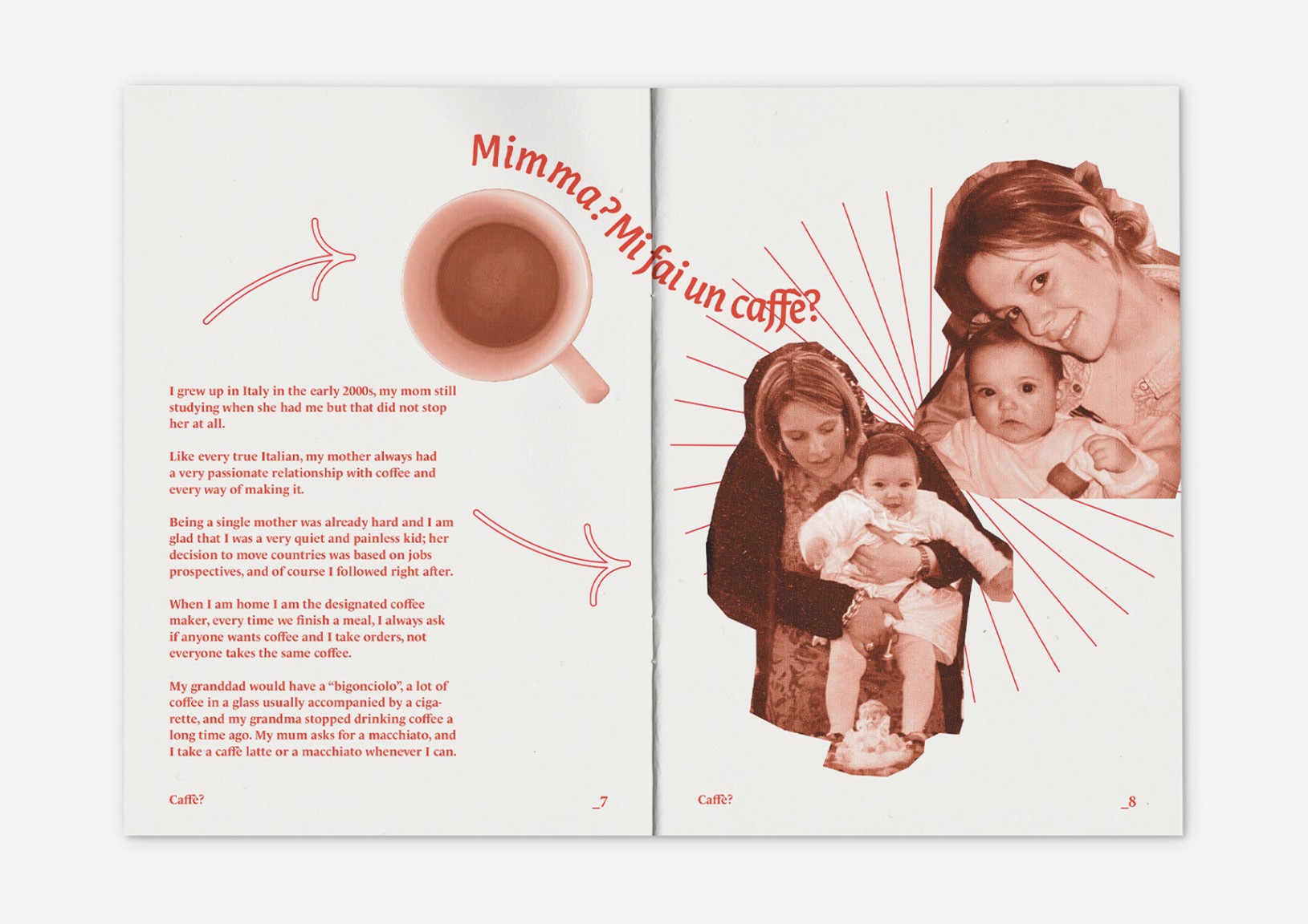 Ginevra Minarini has created a cultural zine exploring the relationship between coffee and her Italian heritage. The project is an exploration of the Italian coffee culture and how it relates to Minarini to a personal level, including stories from her childhood and the day she moved to England.