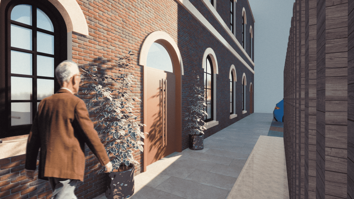 A key focus of the project is creating spaces and experiences that feel familiar. Tactile sensations, such as the softness of a familiar blanket or the smoothness of a wooden handrail, can stimulate sensory connections linked to specific places and moments in time. These sensations can reignite memories and provide reassuring connections to the past. The central staircase and handrail are designed to achieve this sense of familiarity by using well-known materials, helping individuals navigate the building and feel at ease.