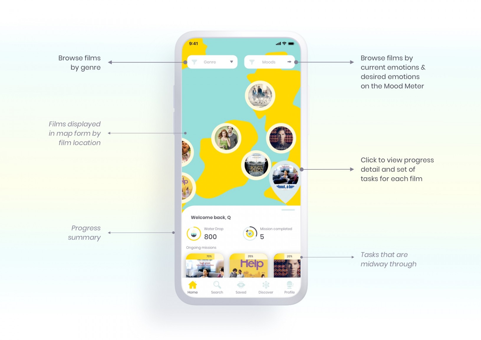 Quynh Anh Doan has developed an app to strengthen emotional intelligence (EI). Combining the common activity of film watching with insights from psychological research, the app enables users to develop, understand, and monitor their EI while continuing to enjoy their hobbies. By recording their emotions, the app encourages the user to emotionally invest in and connect deeper with a film and its characters, thereby learning and improving emotional intelligence skills that help with managing emotional and social issues in real life.