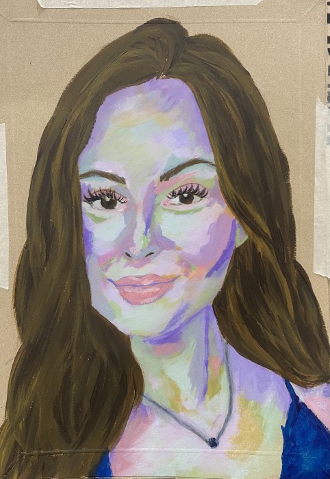 Aliya’s work is often quite personal to her, centering around memories from her life, her close friends and family, and touching on mental health. Influenced by artists such as, Paul Wright and Alice Neel, she uses her artwork as a form of communication to show care and appreciation to all the people in her life.