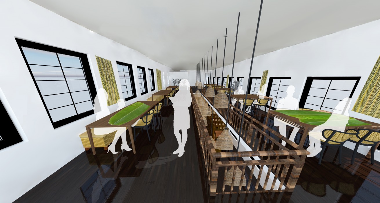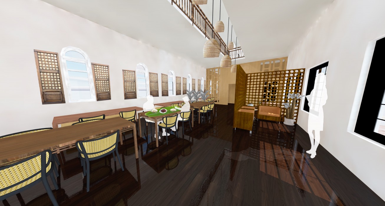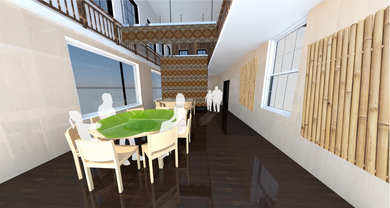 Kasama is a modern/traditional Filipino Restaurant inspired by the authenticity of materials used to build houses in the Philippines and the food in the culture. The meaning behind the name of the restaurant means “to be together”, and through this, the aim is to bring people together through good Filipino cuisine and an open space for customers to enjoy. Using the Sellers Wheel building for the restaurant space is convenient as its wide spaces accommodates in creating openness with the use of double-heighted ceilings. Throughout the spaces in the building, there are materials and patterns that are associated with the traditional patterns in the Filipino culture which have been carefully chosen to compliment as accents against the modern layout and interior of the building.