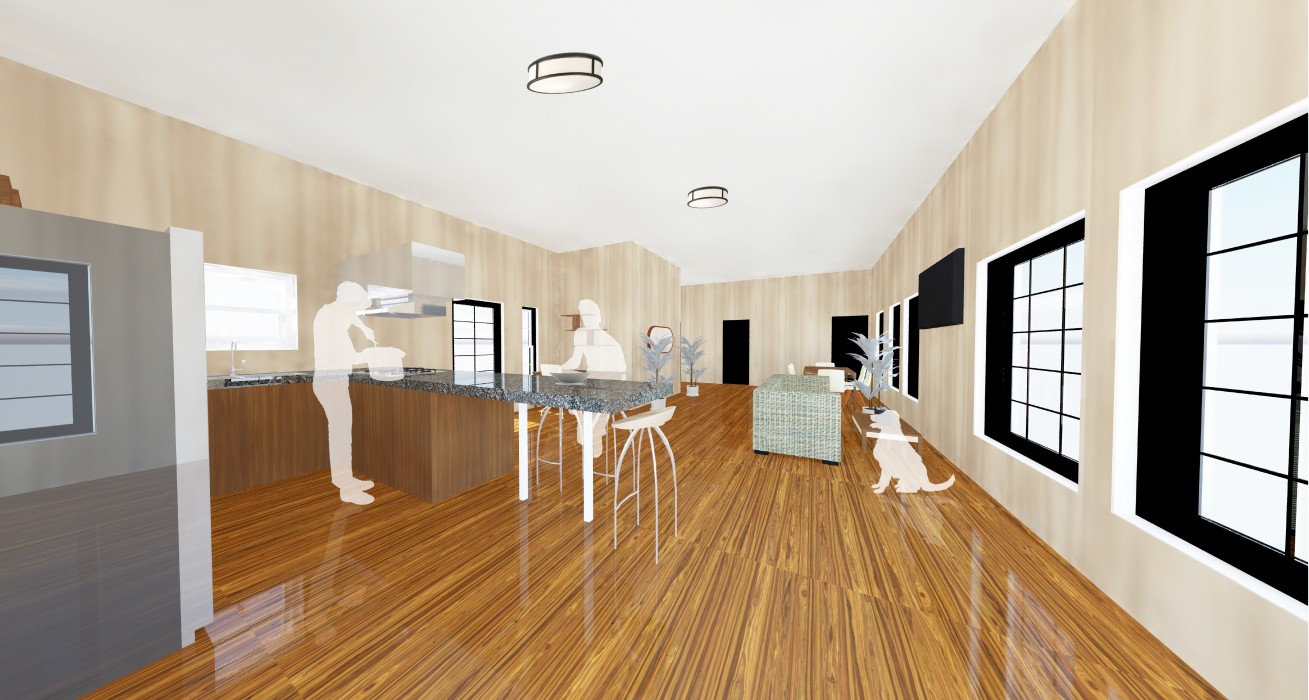 The second floor of the Sellers Wheel building is the apartment of the owner of the Kasama restaurant. It is a minimalist home with mostly timber material for the floor and walls. There are cohesive patterns between the restaurant and the apartment space to continue the open and the modern/traditional appearance.