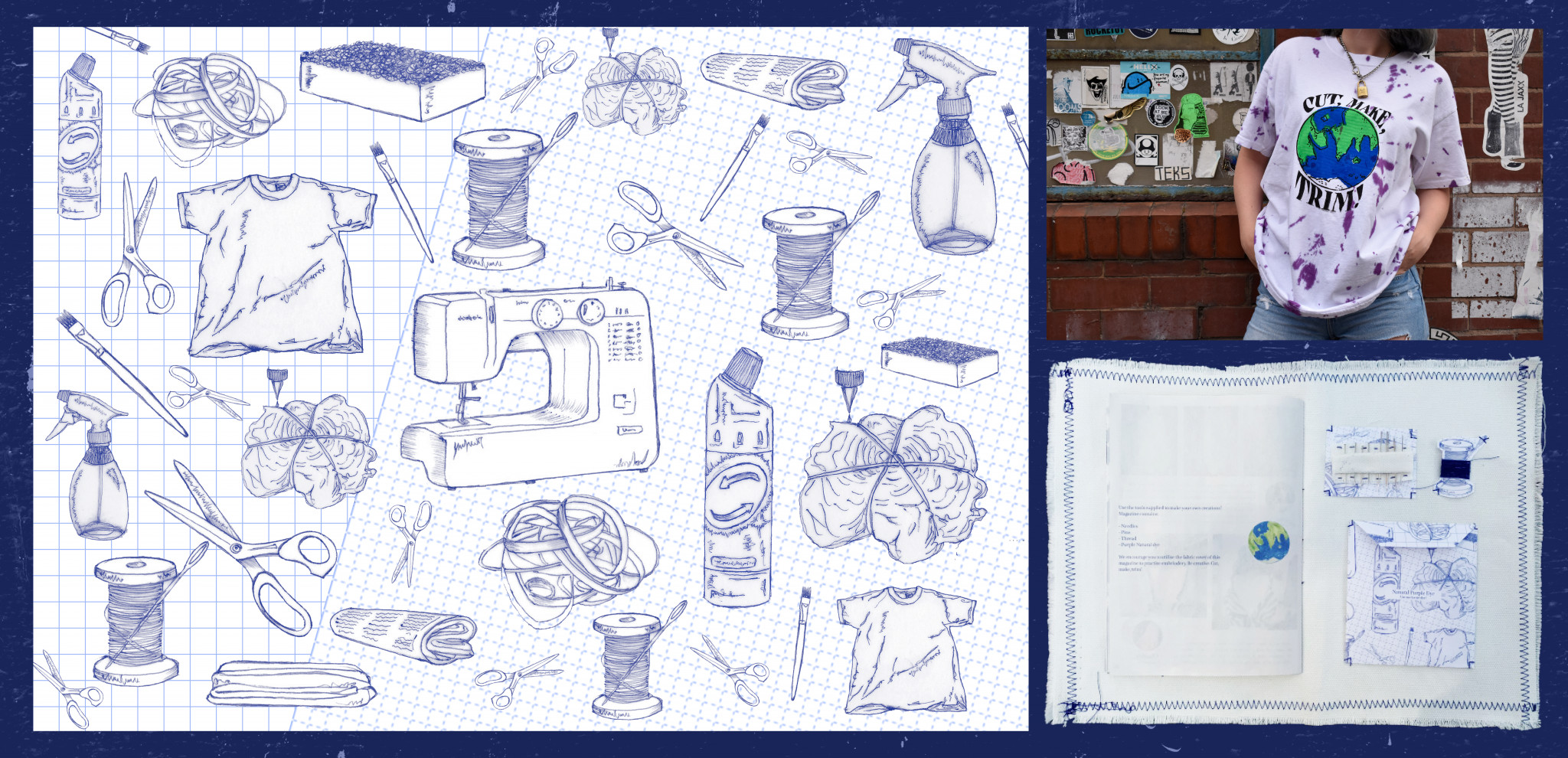 Cut, Make, Trim is a magazine guide to sustainable clothing habits- made from recycled newsprint and canvas fabric. A collection of interviews, photography, how-tos, and illustrations, the publication investigates efforts to combat the devastating effects of the fast fashion industry: from the ethics of buying from second-hand stores to DIY internet trends.
