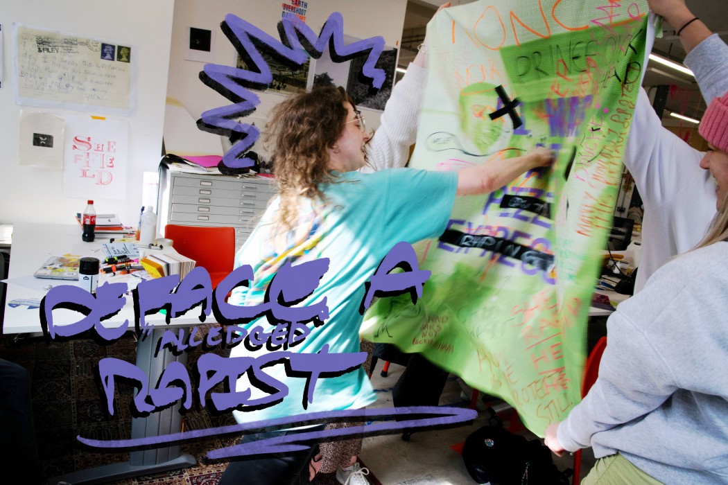 Skunk’s intention was to create a constructive workshop, in which people could get together, along with huge printed posters of perpetrators and their alibis, or their reasoning for committing an offence, for groups to tear it apart and deface it. The aim being, Skunk notes: “to create a positive way of challenging anger towards situations like these, as an alternative to the meditation we’re normally suggested to do instead”. This workshop idea came from the need of a way to channel strong emotions in a safe space, so they created it to accommodate for that lack of space. Using a mix of type, photography and markers (Skunk’s go-to tool) they were able to bring the workshop to reality.