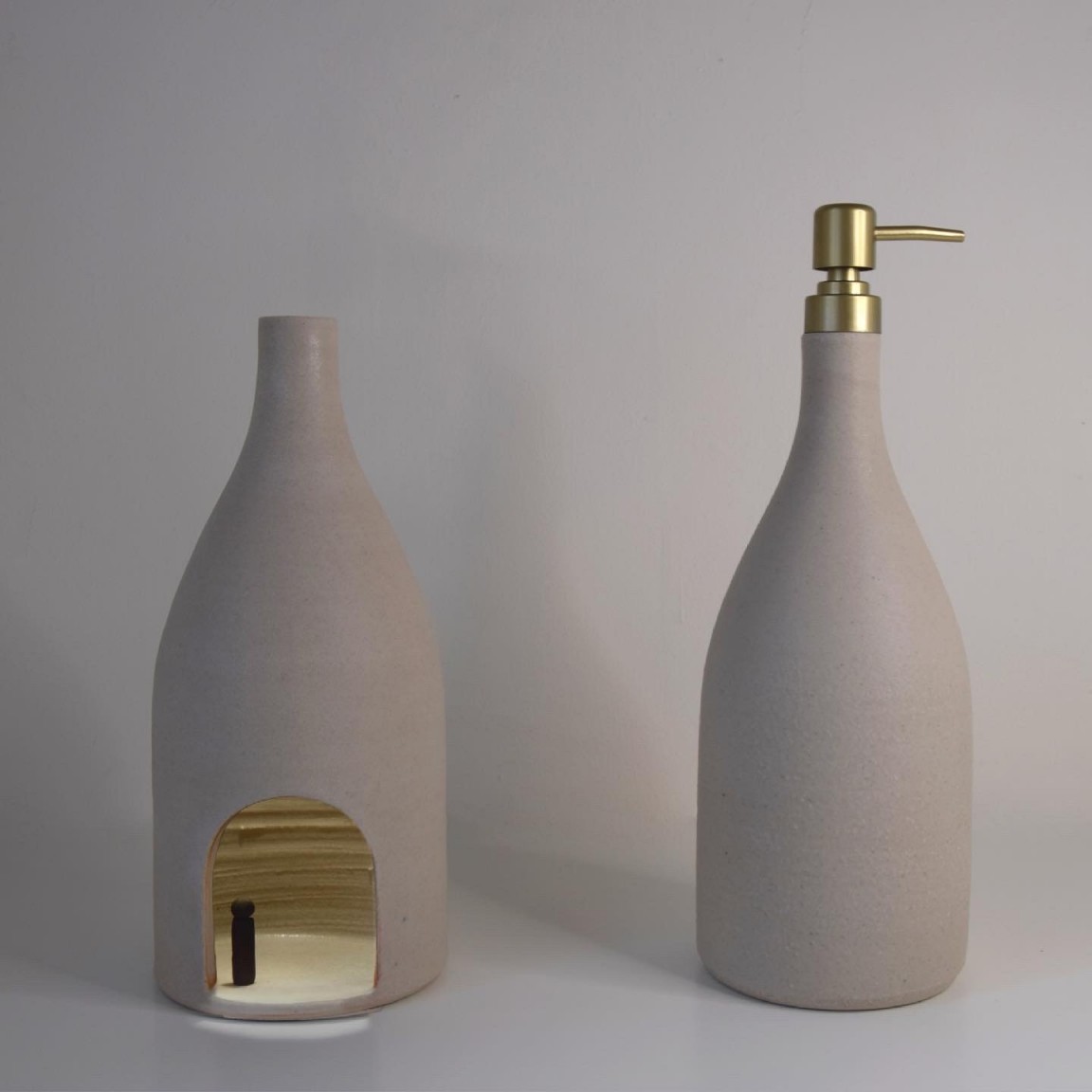 Falcon Works’ kiln building, a former ceramic factory in Stoke on Trent has been re-visioned to home a contemporary bathing facility. The design of the space is influenced by the heritage building’s original fabric alongside new touchpoints combining brick, concrete and ceramic in a subtle colour palette. The interior showcases the accompanying products including Dip mirror and the ceramic soap dispenser scale model.
