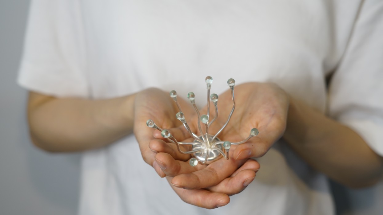 Huixin Jiao’s project is an exploration of how to reduce stress and make people feel comfortable by distracting them with contemporary jewellery. People have different ways of feeling comfortable, but they all have one thing in common. When people feel anxious and stressed, they can make themselves more comfortable by diverting their attention.
