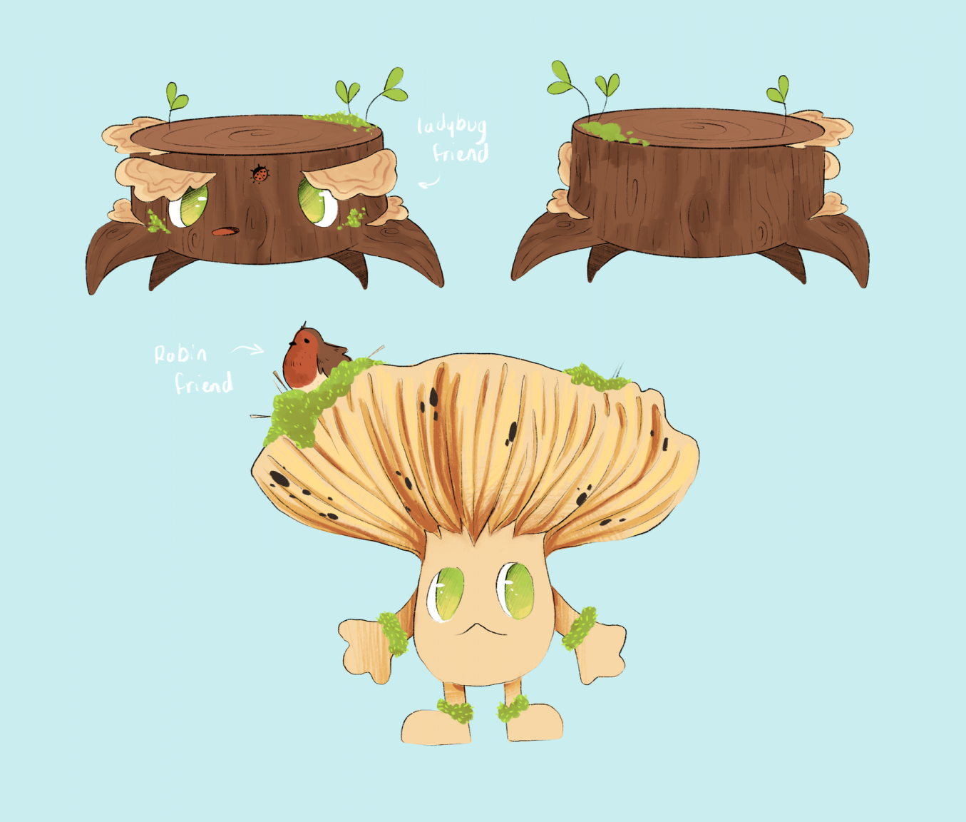 Ego to Eco is a project by Tabatha Hardy about how we imagine, experience and interpret nature. She used digital illustration, clay and acrylic paint to produce a character design sheet and a 3D sculpture of her character, Stump Boy. The work highlights Hardy’s relationship with the natural world and the influence it has on her illustrations.