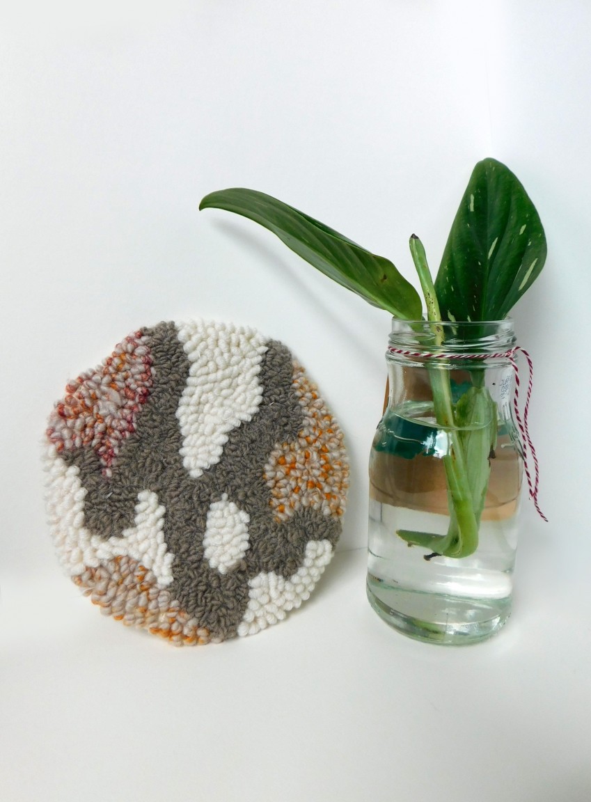 The second piece of artwork displayed is a needle punch Tree Rug made with yarn and monkscloth. Created as a part of a self-written project called ‘process art’, the illustrations focused on the process of making, rather than the end result. The pattern of this attractive home décor piece represents the intricate textures of tree bark and brings nature into the home.