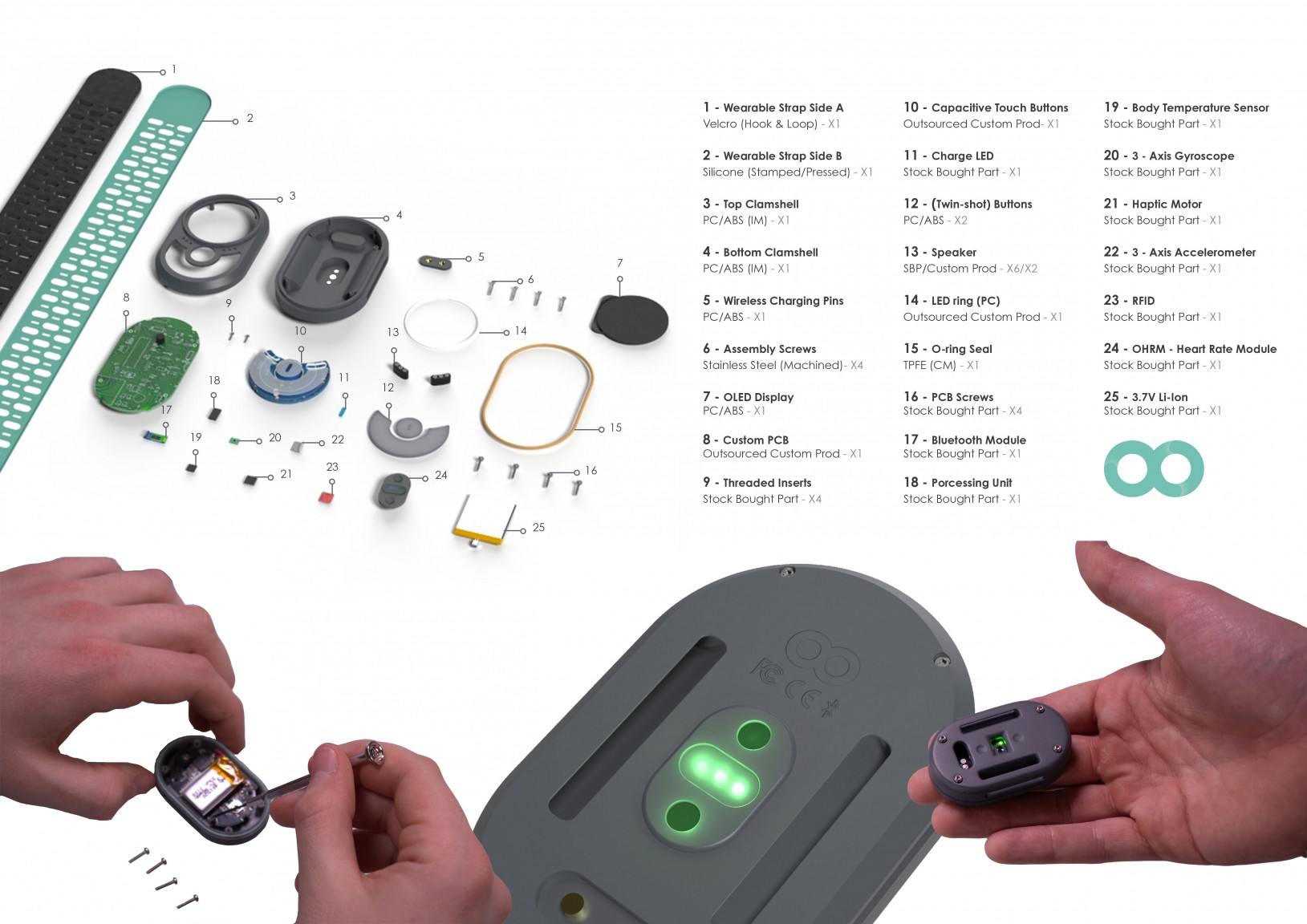 It aims to bridge the gap between the high expense of personal training and being unaware of how to prepare for intense exercise safely, guiding users to the correct form and supporting warm up/cool down routines. The wearable tracker incorporates heart rate and body temperature sensors; the two key measurables to determine exercise readiness. This ensures the targeted muscles are ready to perform optimally, reducing the likelihood of injury and soreness.