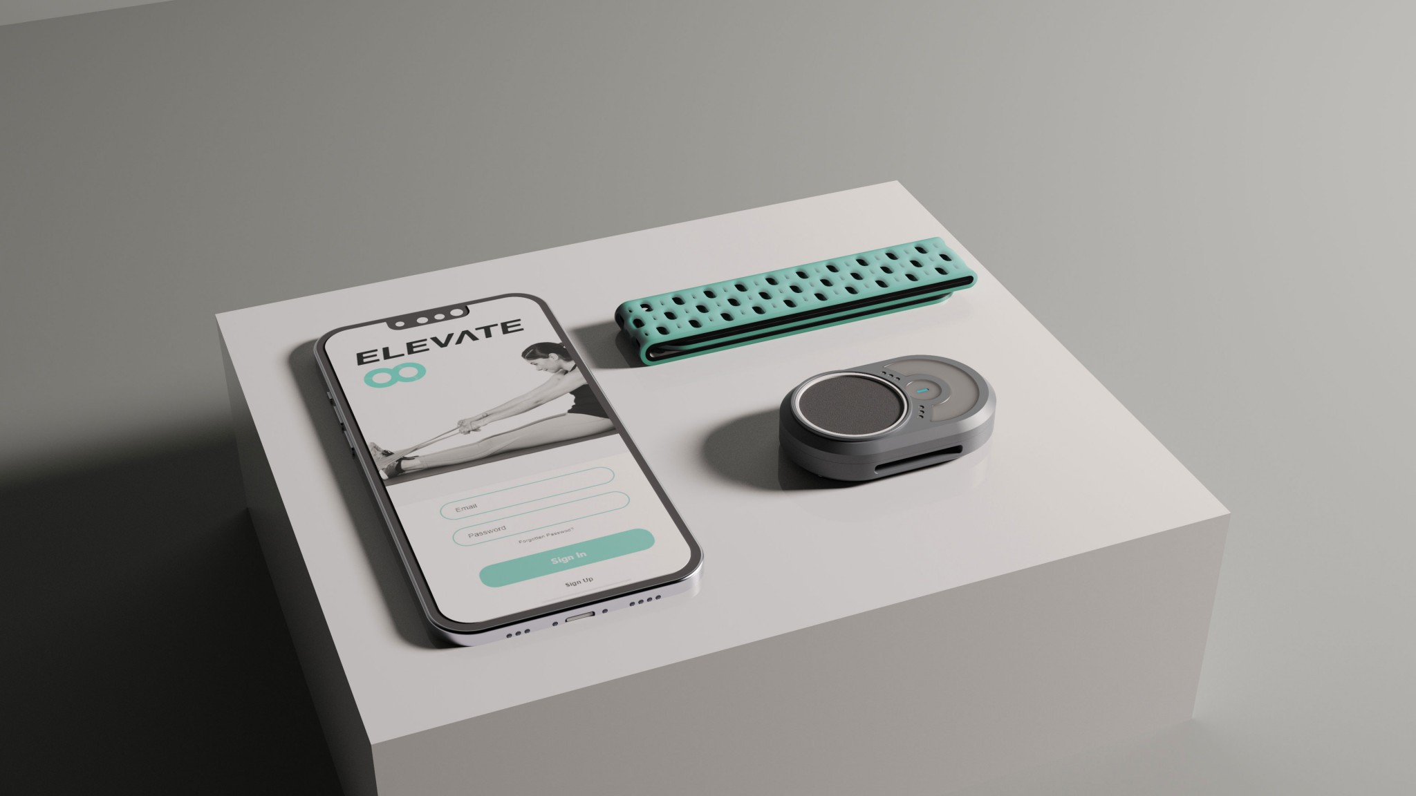 Approximately 41% of gym users have been injured whilst working out, many of which occur purely because of taking shortcuts and failing to warm up sufficiently. Elevate is a product service composed of a wearable device and supporting smartphone app, primarily marketed at vulnerable gym users, such as new gym members and beginners.