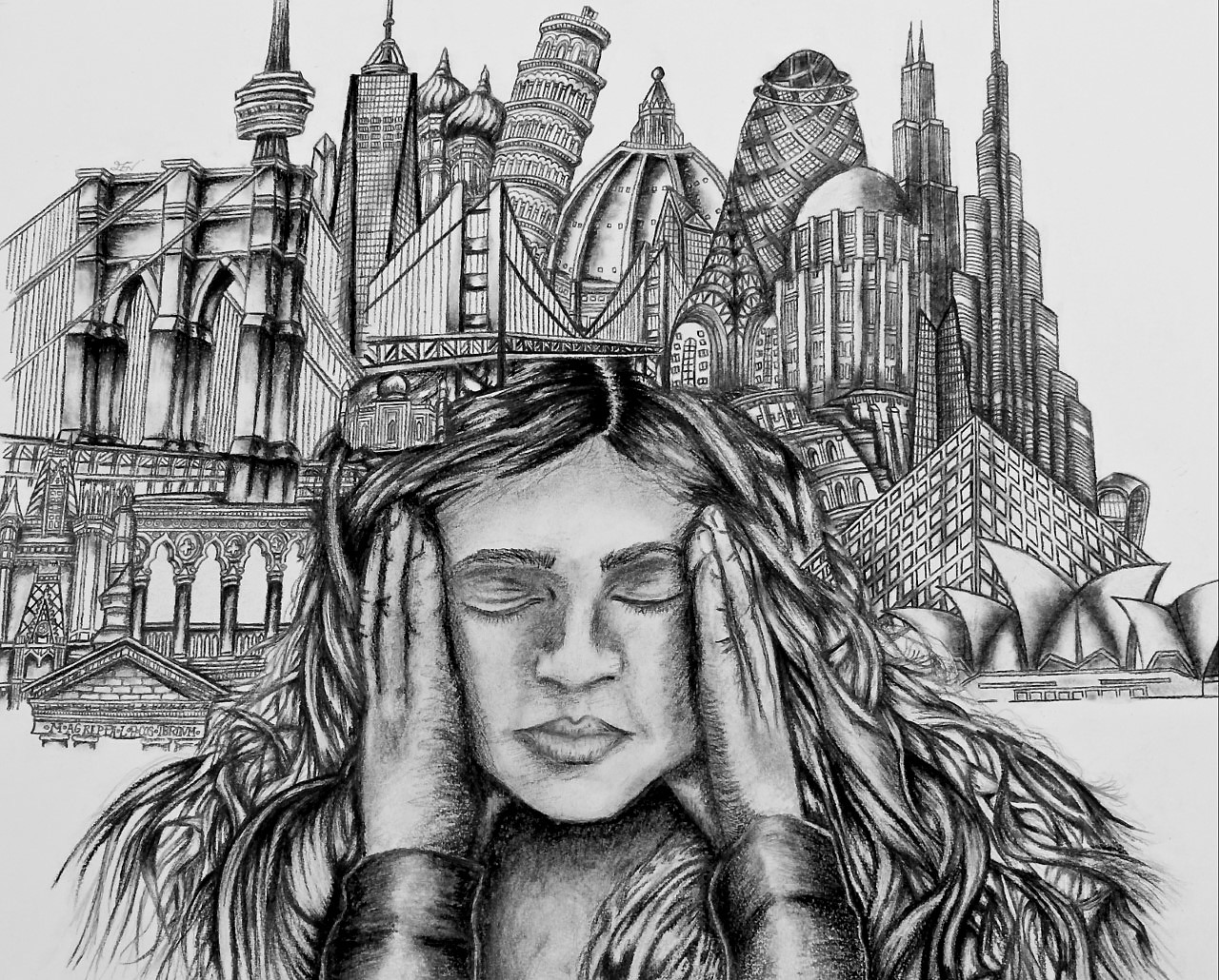 From a young age, Neslon suffered from anxiety. Using her passion for both film and architecture, she implements ways to immerse myself in her artwork, providing her with an escape route and a purpose.