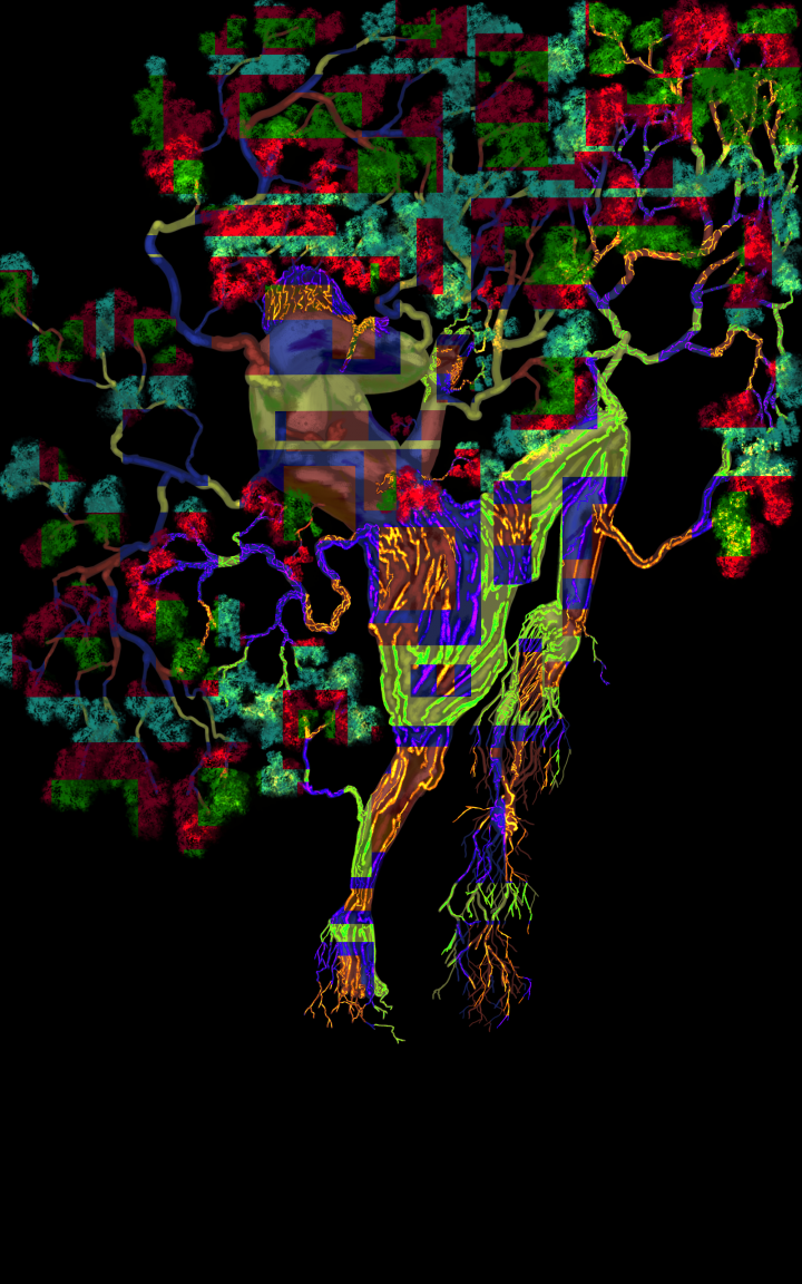 Reimagining nature, Ethoriera depicts an overwatching guardian. Projecting a larger than life ‘protector’, in various forms, shapes, and colours to create a psychedelic effect.