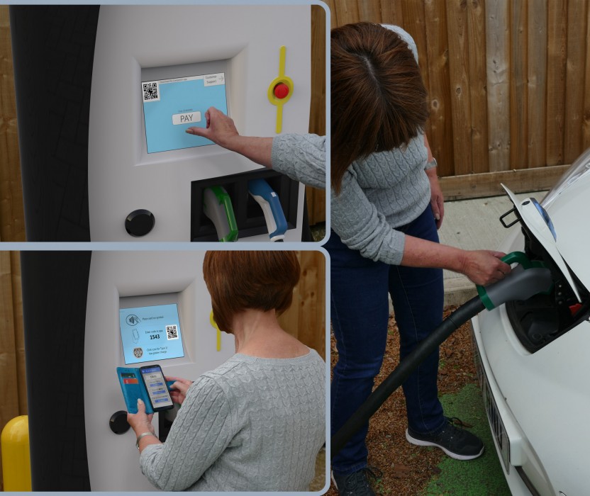 His service is made of two components, the main of which is the UX charger. This product moves away from the petrol pump style chargers, providing two user interfaces per charger in a tri-sided design. The addition of a status light on the charger allows users to determine if they can use the charger without having to move up to the machine.