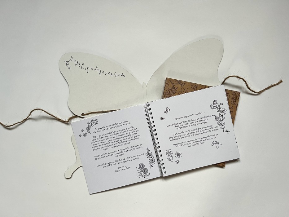 “Throughout this book, I hope to open a portal for you to escape the real world and leave all your worries behind. Encouraging you, to use your creativity and connection to nature and ultimately, allow yourself to be immersed in botanicals. Noticing the patterns and shapes that surround us everyday. And of course, it wouldn’t be exploration and more if this book didn’t transform into your own piece of paper nature. Don’t worry, you’ll see! So go ahead… be adventurous. Escape, explore and go find more!”
