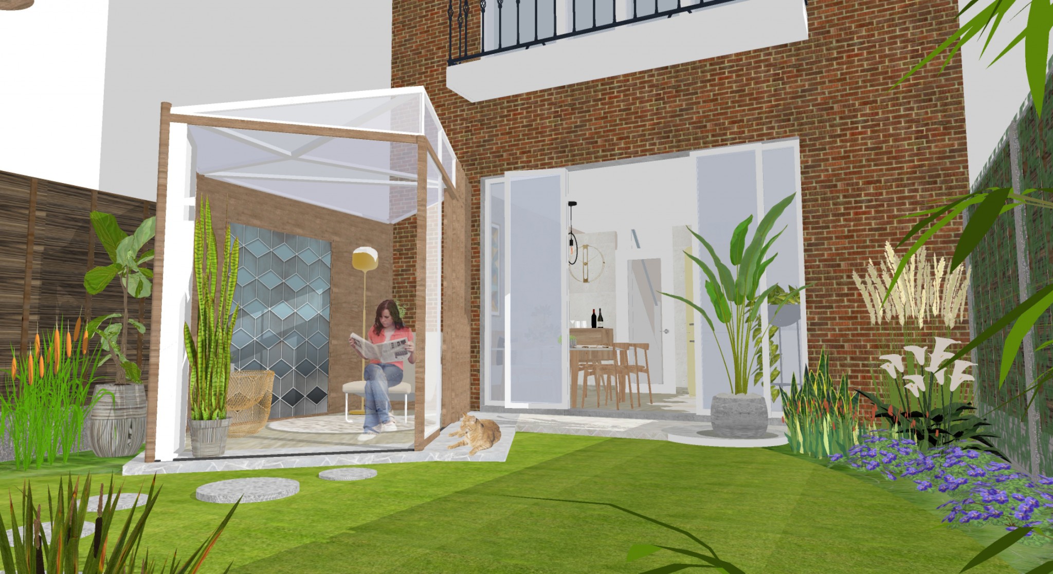 The space is suitable for a summer BBQ with friends. It also can be easily transformed into a conservatory during the winter