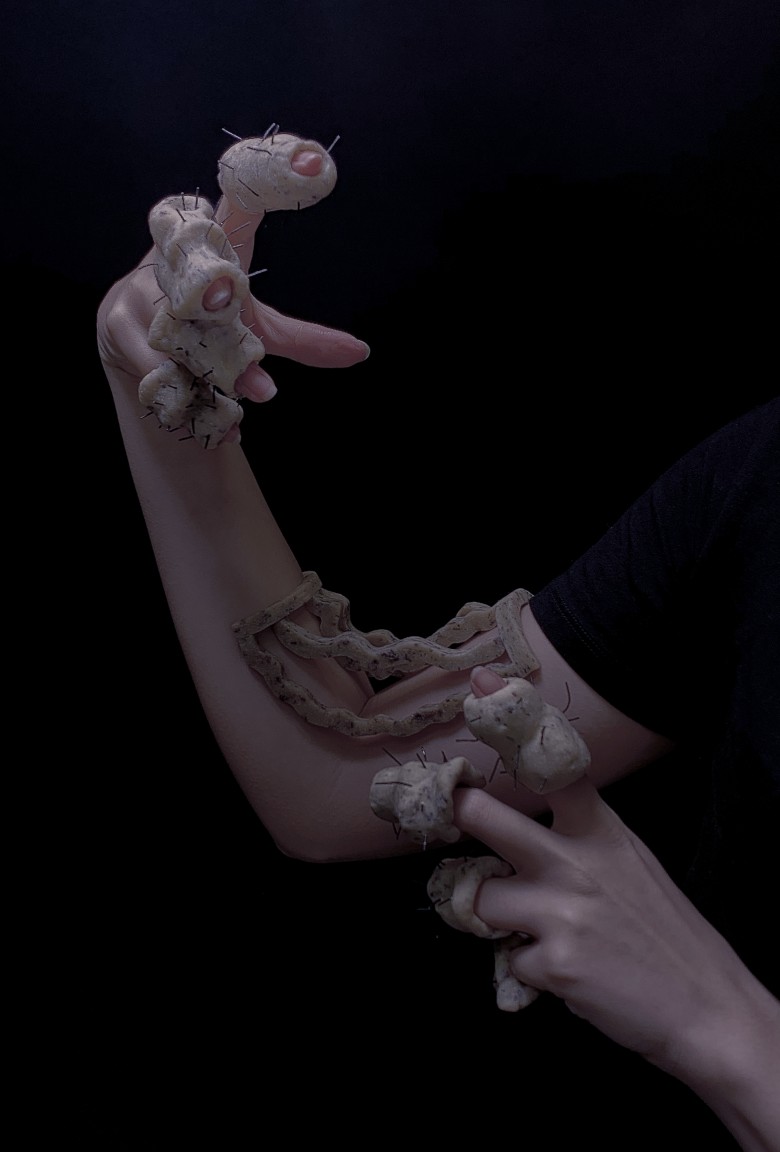 To this end, the wearer is encouraged to interact with the jewellery – the materials used offering contrasting feelings – between comfort and discomfort, and acting as a limit on the wearer’s body. Liu reminds the wearer that they will not always get what they want.