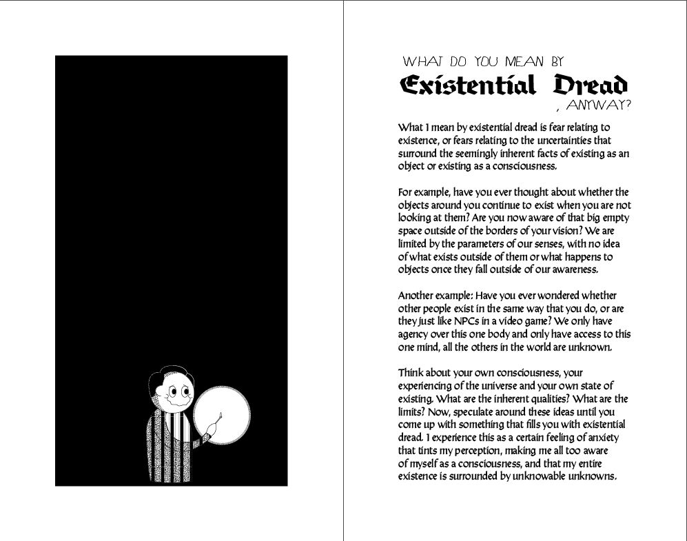 Aiming to make people feel a connection to one another based on something completely non-superficial, Michael Hargreaves’ creative writing workshop on the subject of existential fear included a ‘homebrew font’, poster design and illustrated booklet.