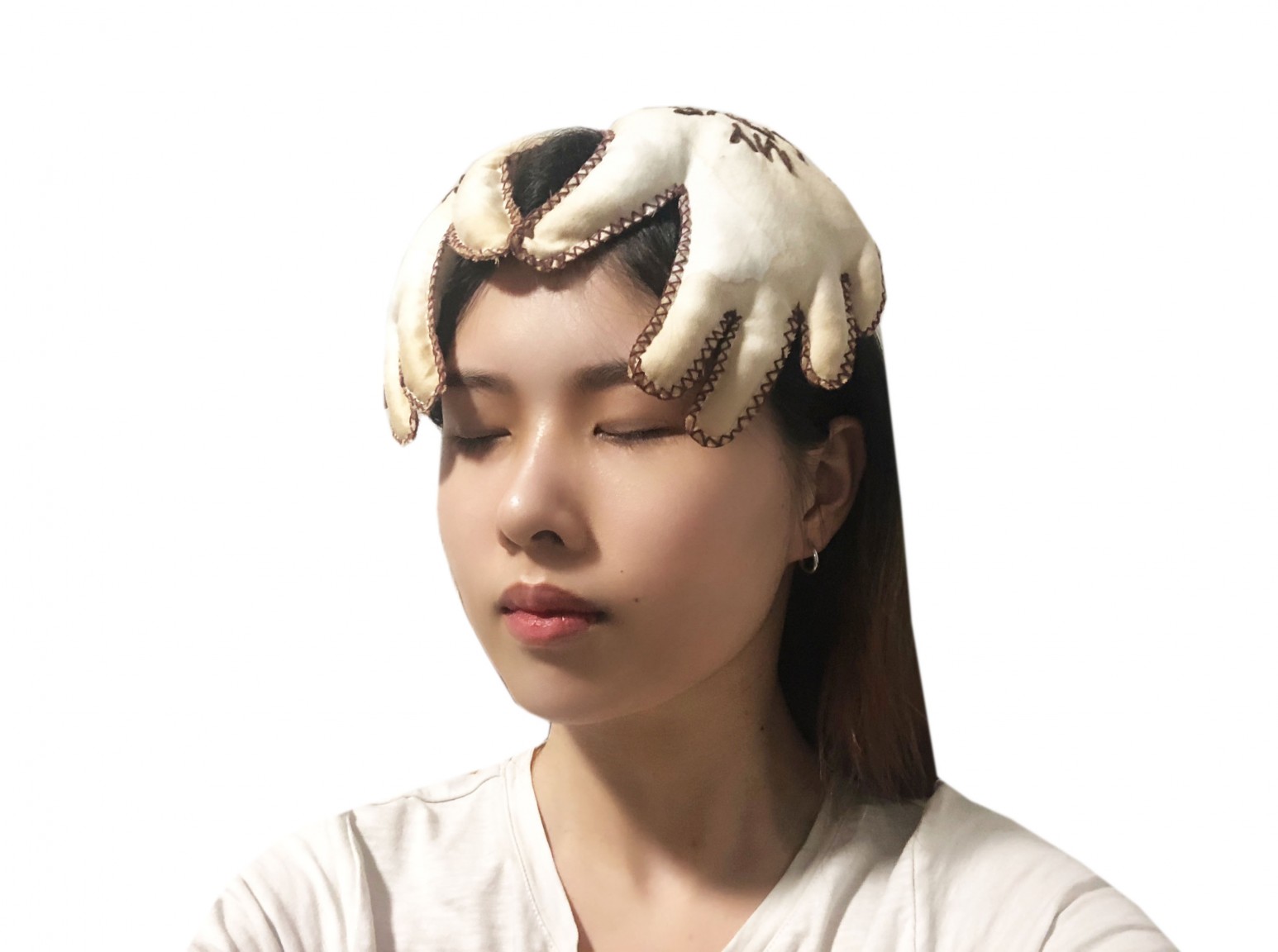 Nuo Chen‘s jewellery aims to comfort people who lack physical contact and give them a positive feeling. Using Chinese medicine and fabrics as the primary materials, Chen creates interactive objects, which worn in particular places on the body, relieve psychological stress through touch, treating the body physically and pharmacologically.