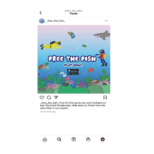 Shaw created a mobile video game named “Free the Fish” to provide an insight into the reality of our waters, that with the Great Pacific Garbage patch growing 4x faster everyday, it is a harsh reality that our fish are dying quietly without us really knowing.