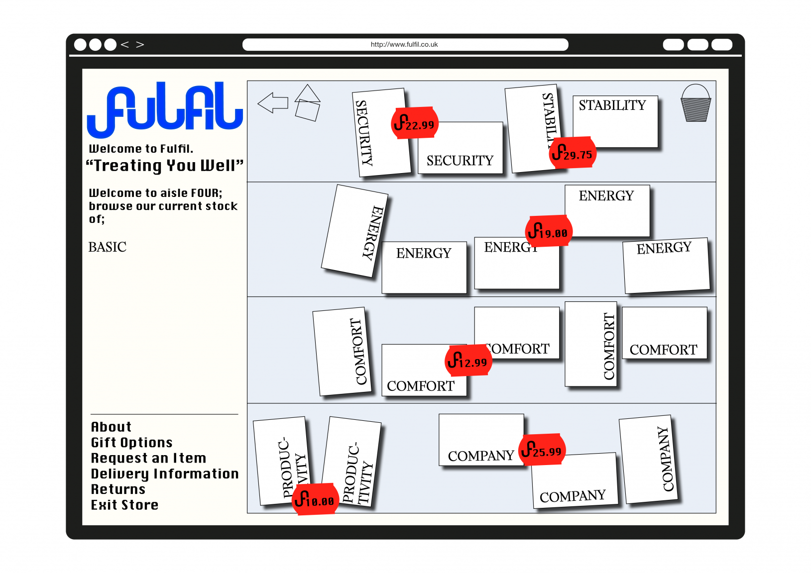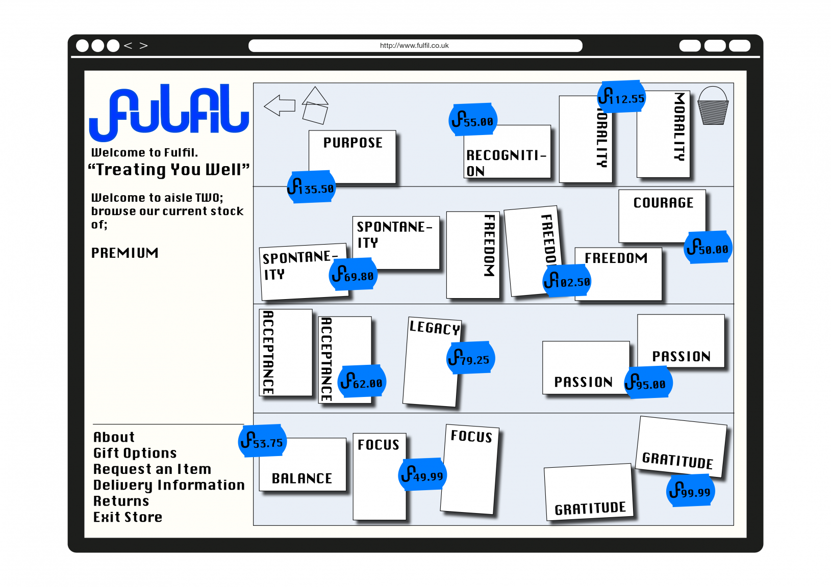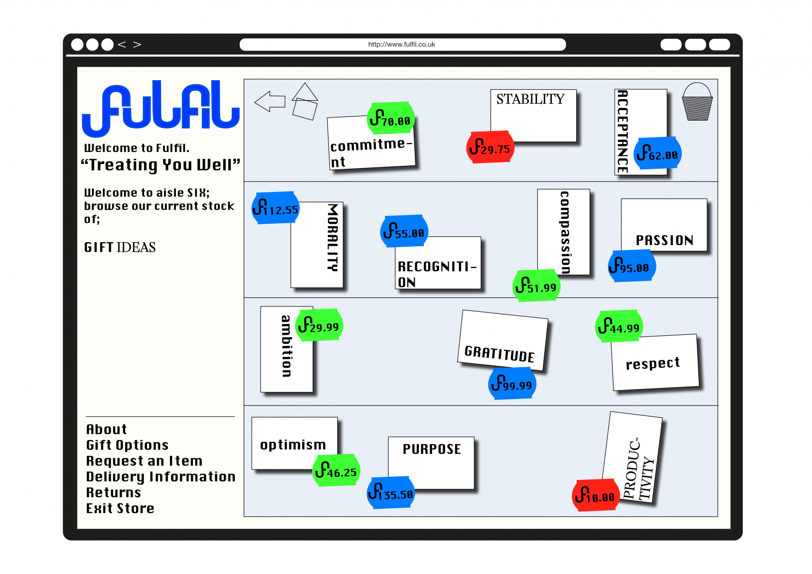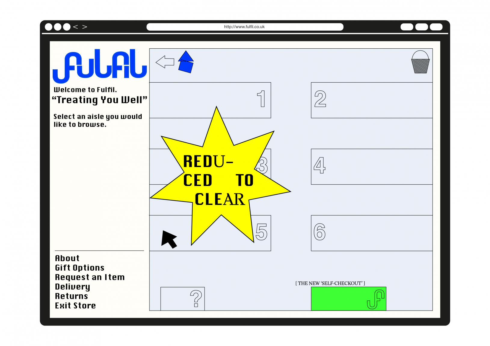 Emily Barker’s web project Fulfil is an exploration into the effects that instant access to products has on human psychology and our ecology.
