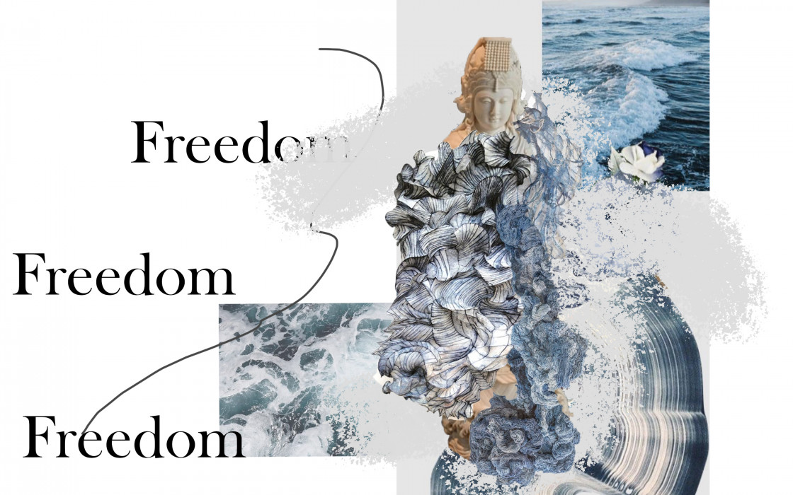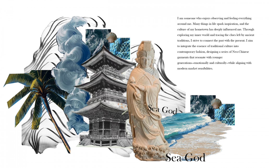 Chi You finds inspiration in observation and cultural heritage. The traditions of their hometown have been a continuous source of creative energy. By exploring their inner self and drawing from ancient symbols, they aim to connect the past with the present through contemporary fashion.