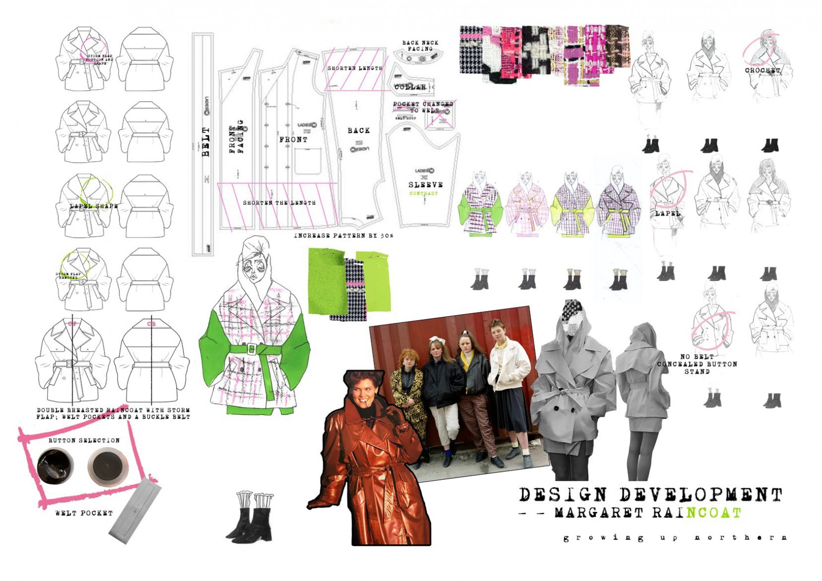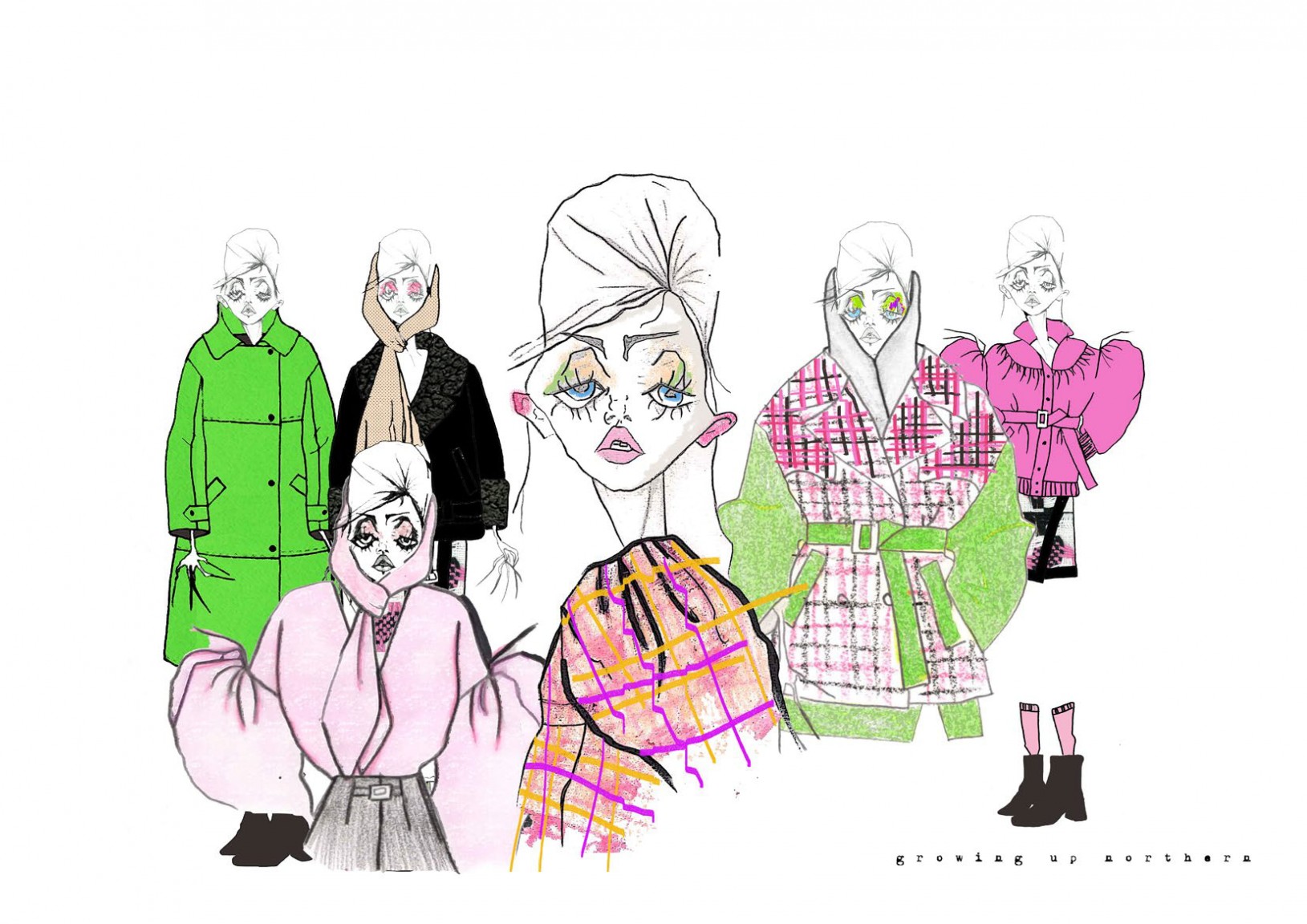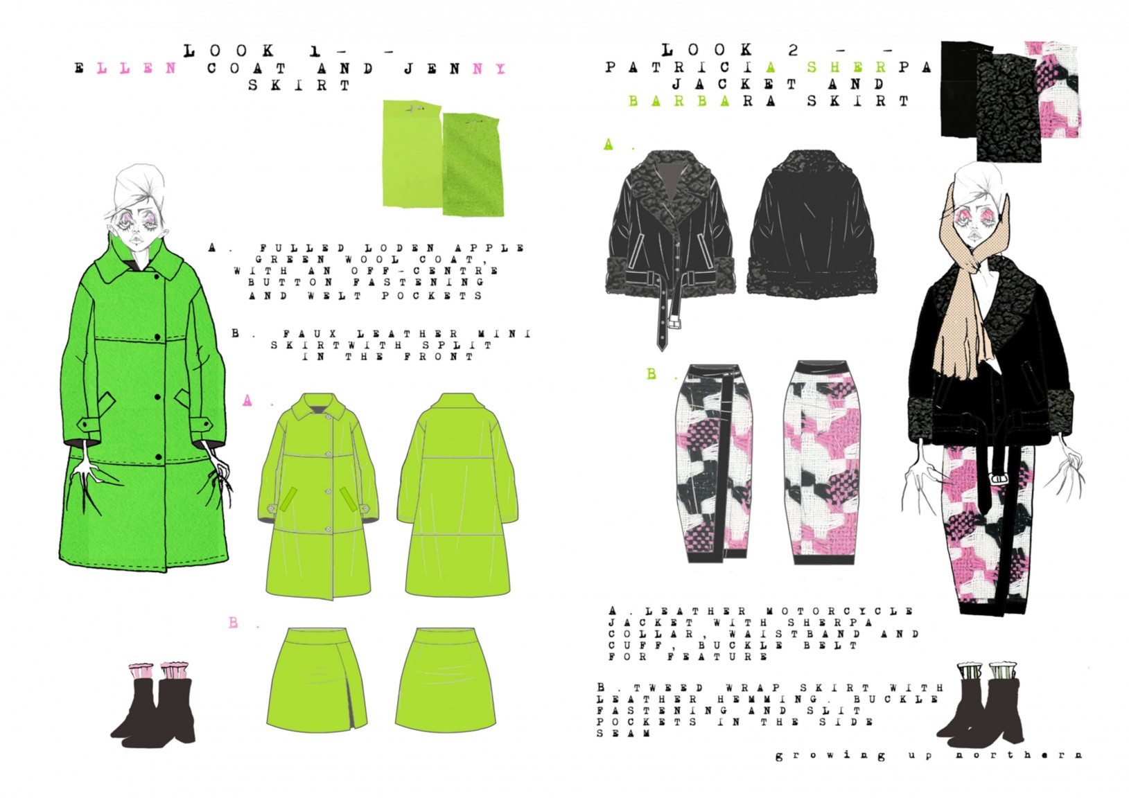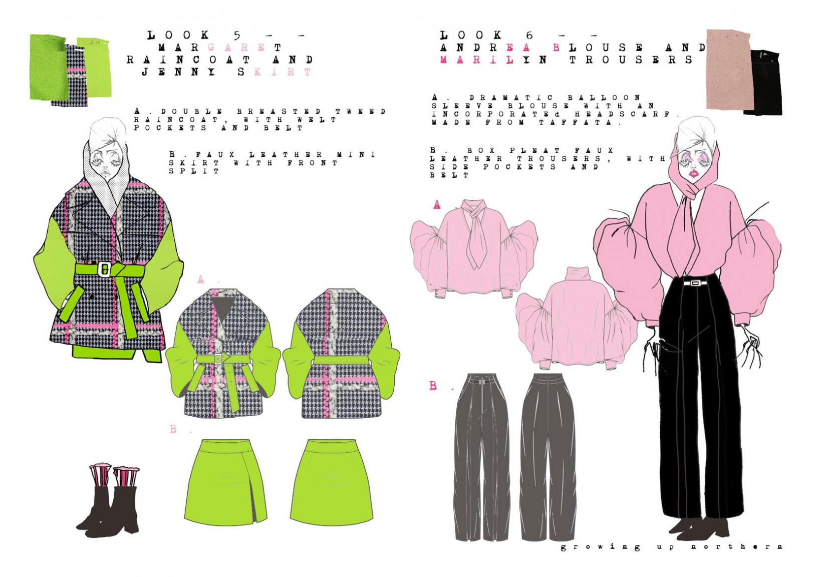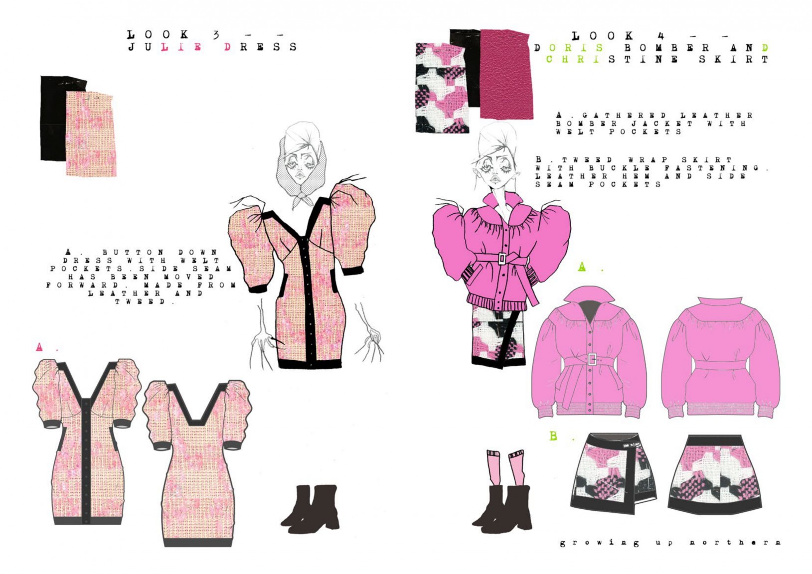 Inspired by women from Northern England, in particular Batey’s Grandmother Doris who was born and married in Hexham, Northumberland then later moved the family to Staffordshire to support Batey’s grandfather and uncles in the mining industry. Growing Up Northern examines the changing role of woman within the household over time, focusing on those women who want to break the stereotype and become something other than a housewife. For this, Batey’s muse is a young woman in the 1960s both on the cusp of becoming a housewife, but yearning to break away from the era’s normality. This conflict might be seen in her contrasting of chic printed fabrics with subtle yet vibrant colours – vivid pinks are woven into traditional tweed.