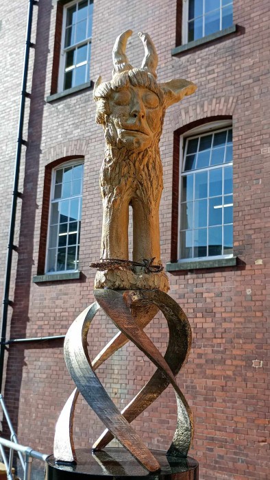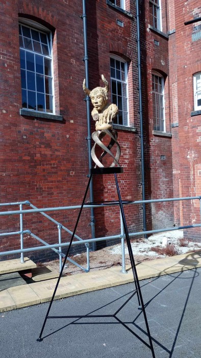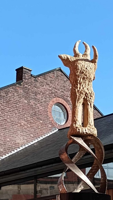 Steven Wood’s sculptures, Guardians of Creativity stand guard in the Old Head Post Office courtyard. These symbolic gargoyles are seated on steel stands which echo the metalwork of the courtyard gates, mythical beasts guarding the gates of fantasy and imagination. They serve to remind us that everyone, regardless of their backgrounds, are welcomed and encouraged to explore their creative potential without fear or judgement.