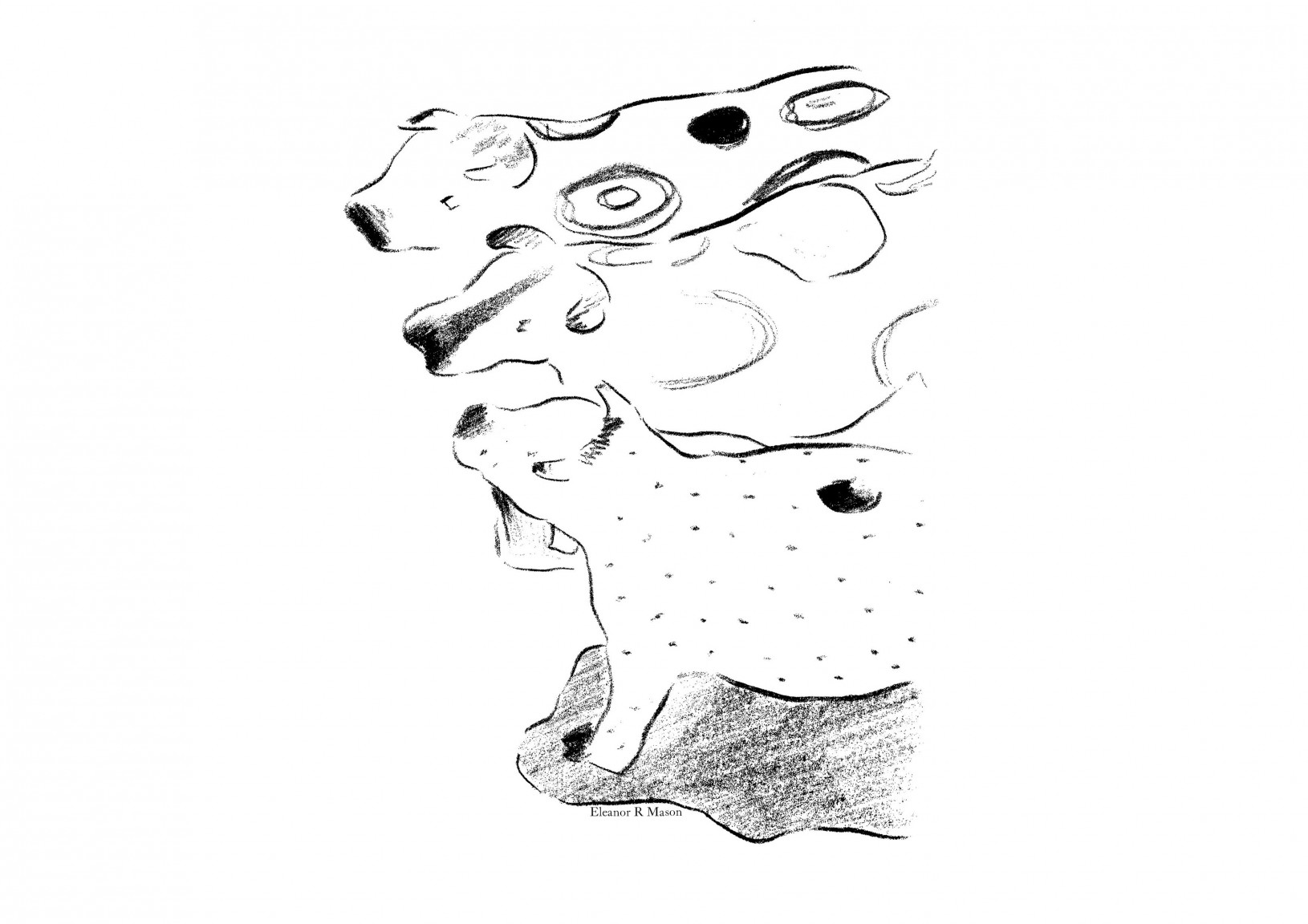 Eleanor R Mason’s striking monochromatic illustrations translate analogue processes into the digital world sympathetically maintaining a real and tangible humanness. She explores the expression of subjects or feelings through textural and representative marks, avoiding accurate and excessive lines, leaving the viewers eye to fill in the details.