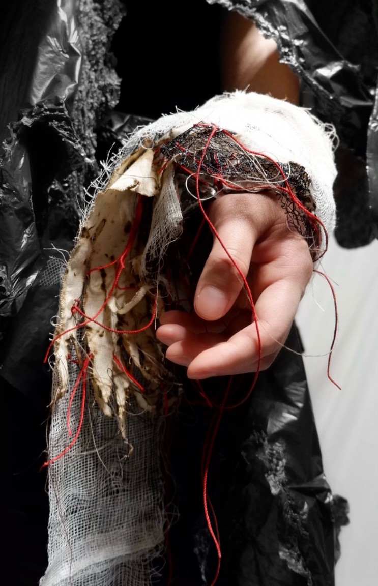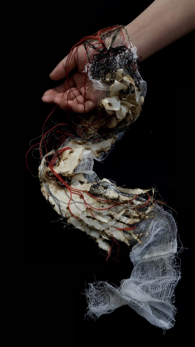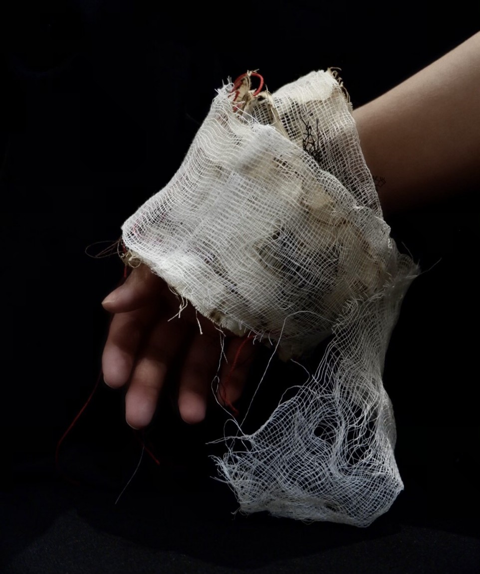 Wrists full of “wounds” are wrapped in gauze. Is it healing the pain or a hidden vicious circle? Withered flowers loomed on the neck, was it suffocated by the invisible force, or was it courage to shake hands with the true self? Xu tells about her personal experience and understanding of smile depression, encouraging those who are experiencing these pains to pluck up the courage to face their true self, overcome the illness, and regain a new life. She says “I hope that more people will pay attention to and value mental health.”