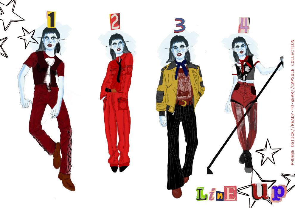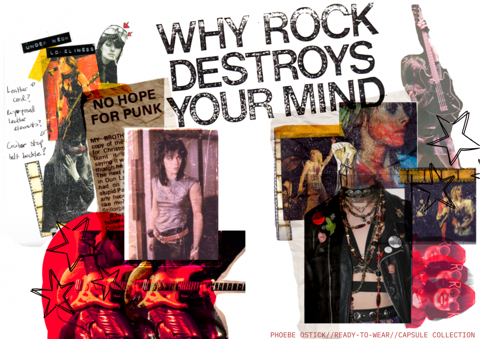 Ostick has always had a deep fascination and metaphorical and indescribable bond with music. Ostick looked at the artists in her life who have influenced her as a designer and artist as well as her own wardrobe, including those who grew up with her through girlhood and now in her current years. Ostick linked these topics to look at feminine rage.