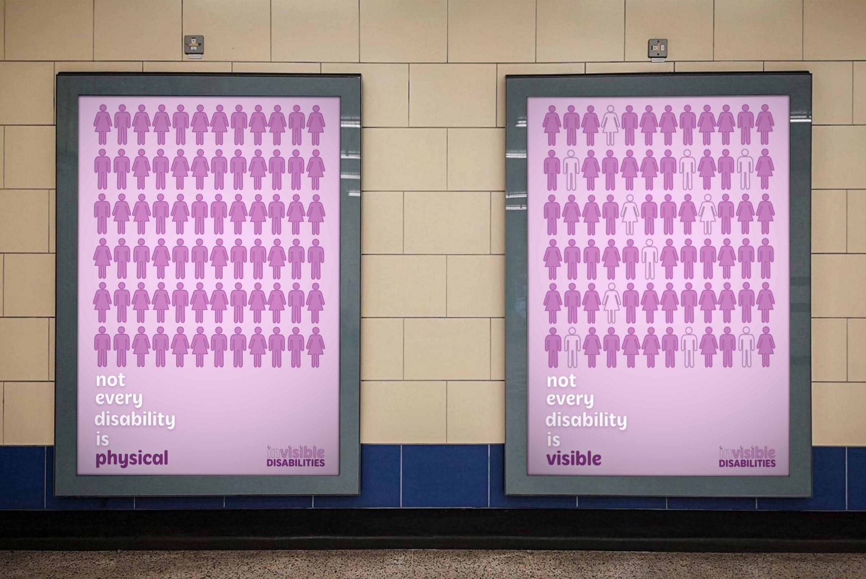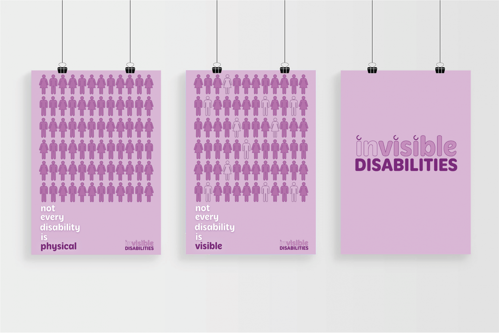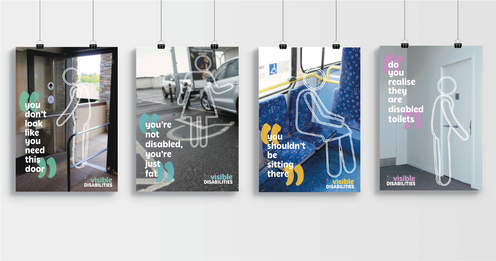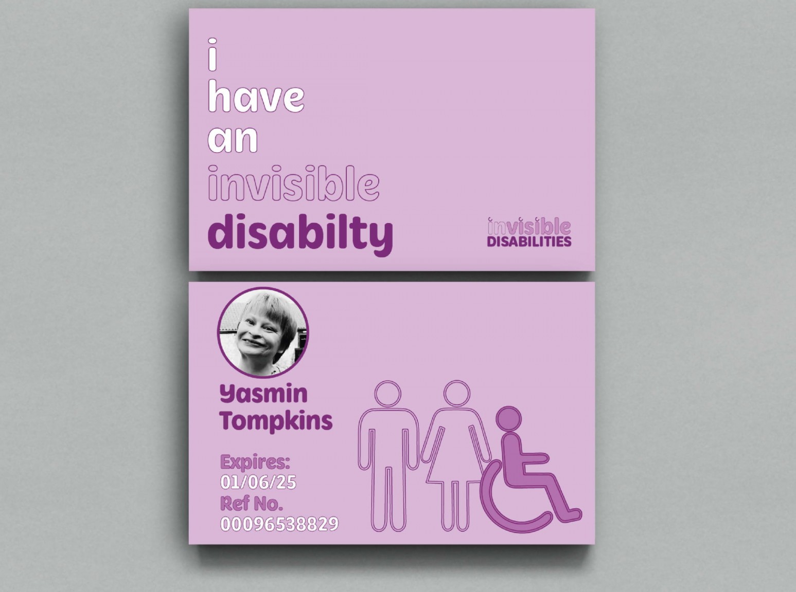 Invisible disabilities include psychiatric disabilities (anxiety disorders, major depression, bipolar and schizophrenia etc.) traumatic brain injury, epilepsy, HIV/AIDS, diabetes, chronic fatigue syndrome, cystic fibrosis, ADHD/ADD and learning disabilities, all of which are normally not apparent when looking at a person. Society often ranks disabilities, comparing physical to non-physical, with it commonly assumed that someone wheelchair bound has more of a right to use disabled public access over someone who has a hidden disability. Individuals who have a disability need a space that can help them and make their day-to-day life that bit easier – disabled toilets, parking, seats on public transport or accessible doors. Tompkins campaign has multiple outcomes to maximise public awareness: a logo, posters, infographics, mini animation, website, badges and identity cards.