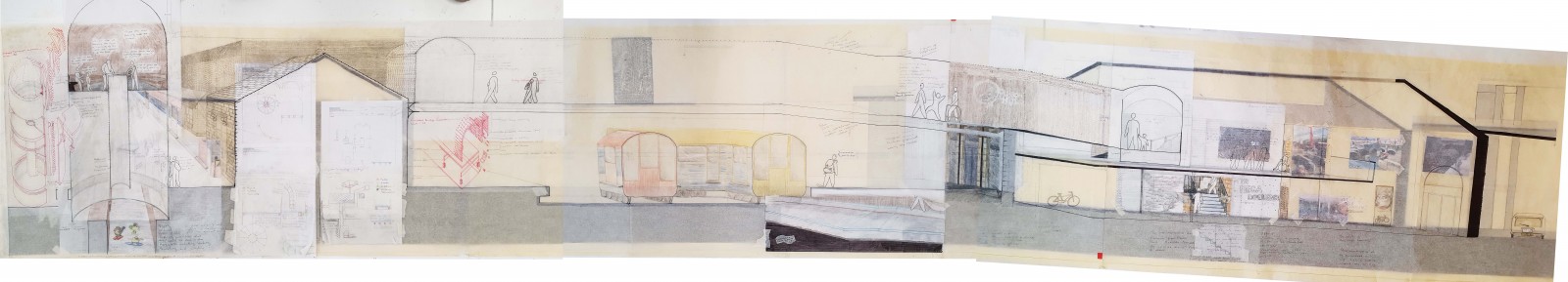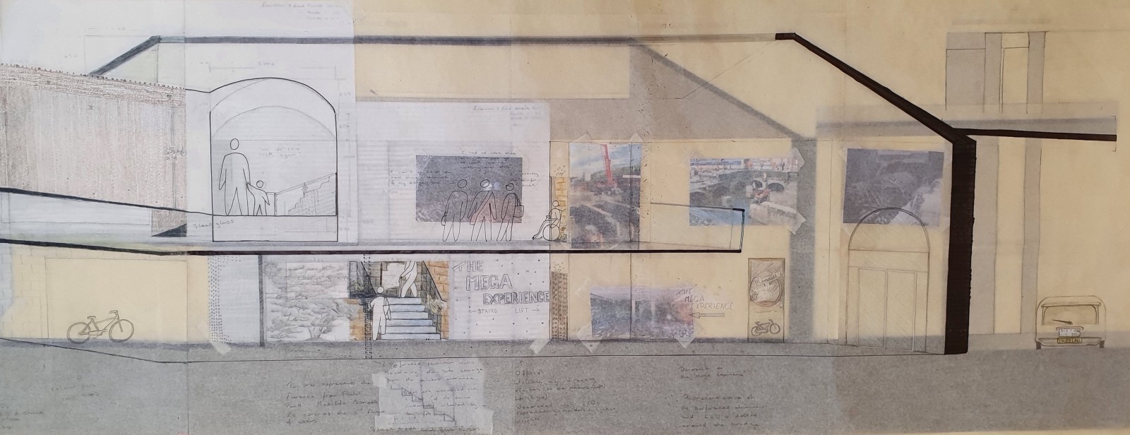 The river Sheaf flows under Sheffield Station. It’s not easy to access, as some people could find it physically challenging with its uneven ground, the currents and varying phobias, including spiders. However, it is a very enjoyable adventure. Therefore, Dalton wanted to show the river flowing under the station by creating an exhibition space to provide an overview of the Megatron.
