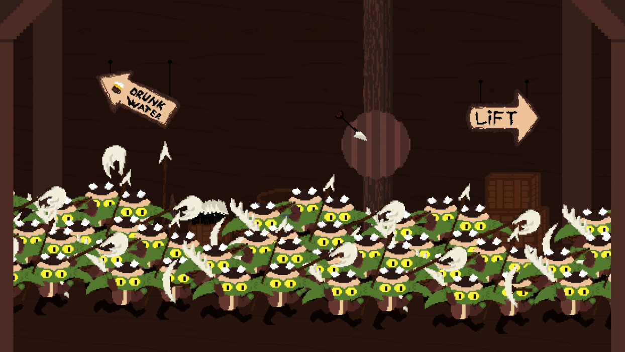 After having no more money, Knite, a humble knight has to embark on a quest to obtain money. A single job is available, being a heist for an ancient artefact from a keep occupied by goblins. With an empty wallet and no choice, he signs the contract and goes off. The contract omits much information, resulting in Knite having to experience it first-hand. They break into the castle, run for their life and eventually obtain it. Their exit is blocked by a dragon, which blasts Knite back to the beginning.