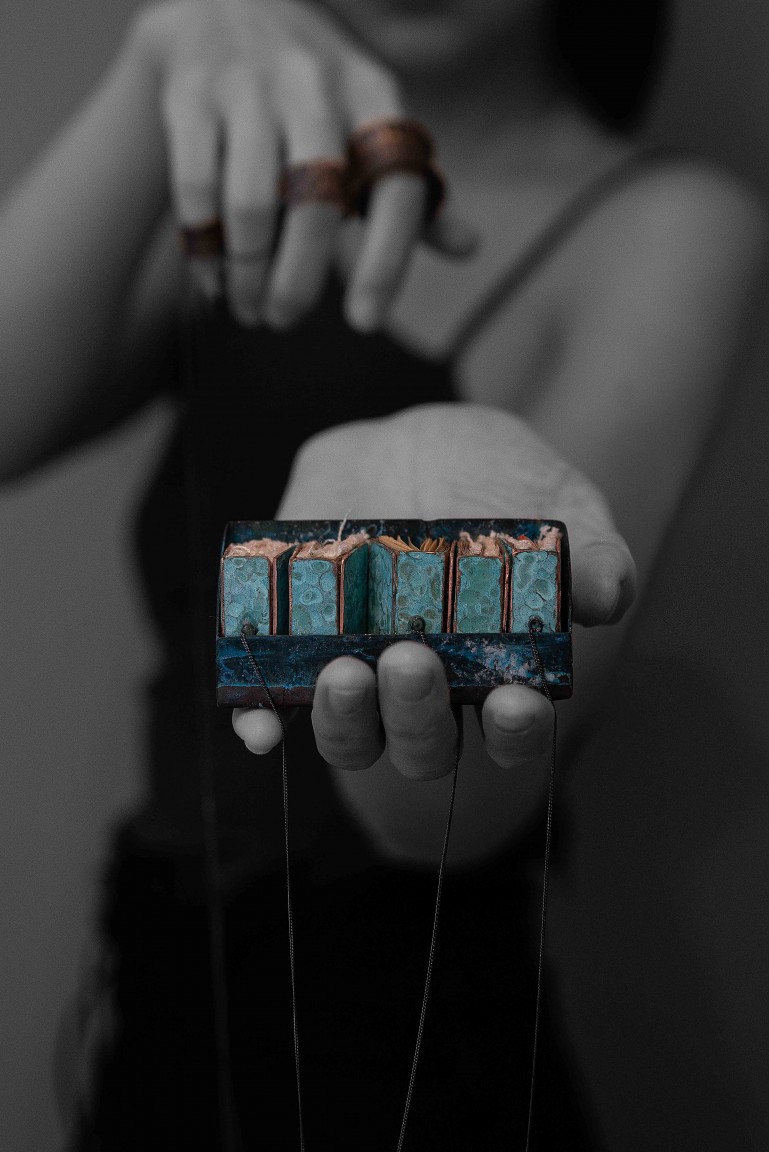 Imogen Cheng’s Let the Past Stay in Our Future uses contemporary narrative jewellery as a carrier and medium to explore the relationship between objects and human beings. The work asks us to reflect on our connection to the personal objects we embed with memories and stories.